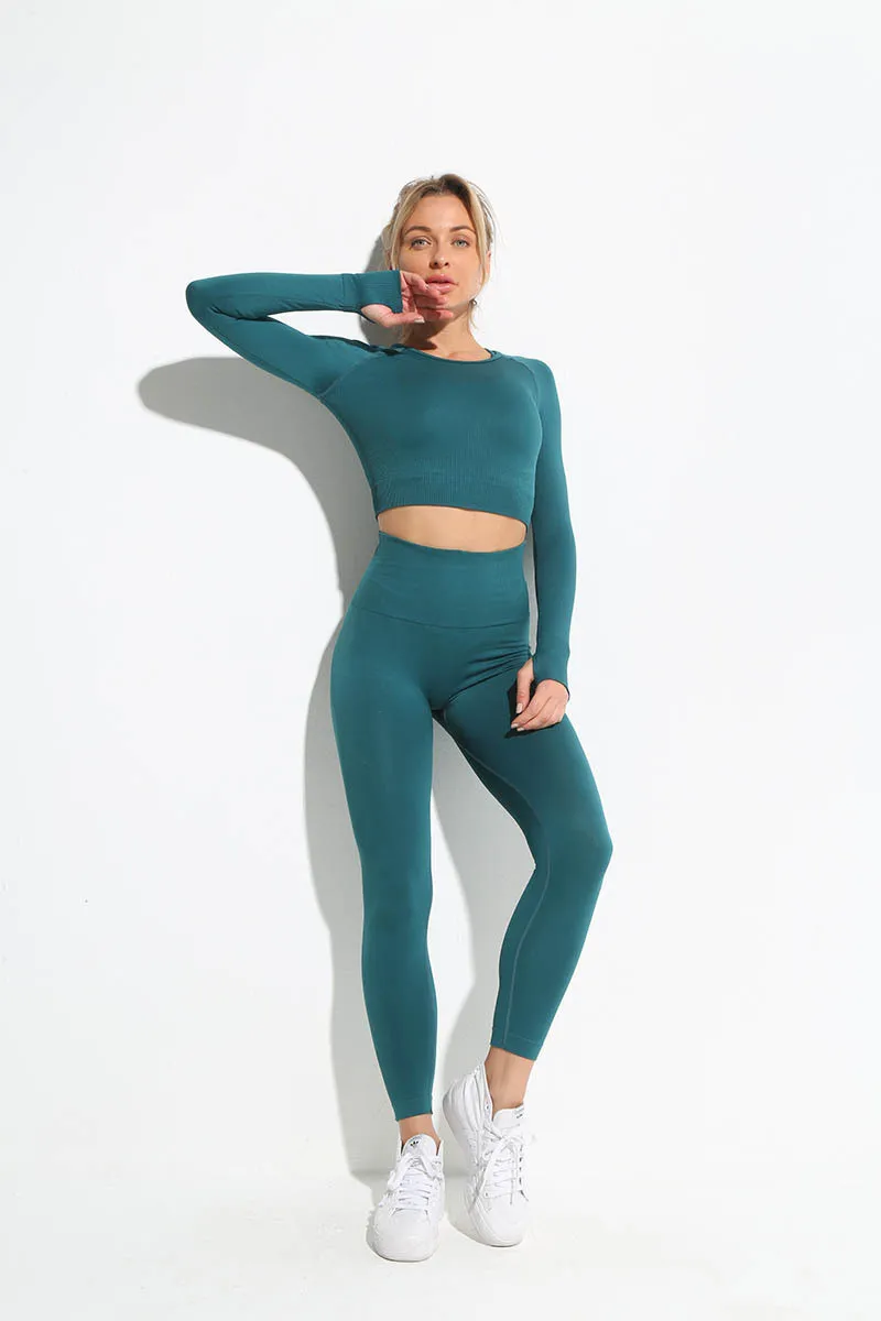 Женский комплект для йоги, с длинным рукавом и высокой талией