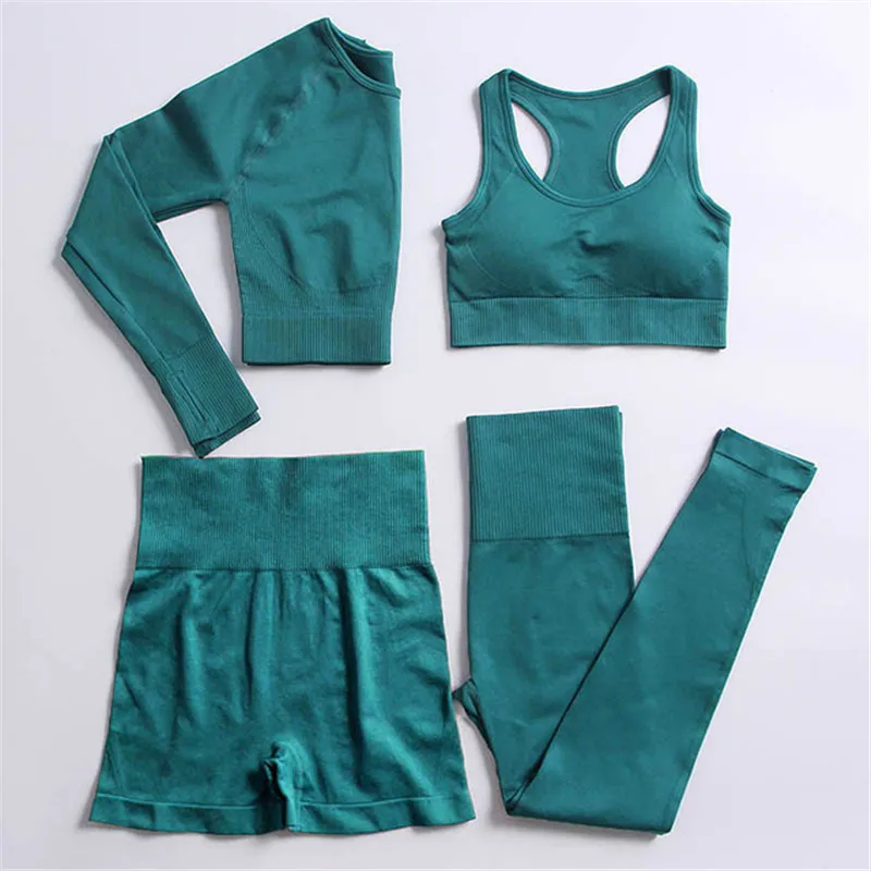 4 шт., женские бесшовные леггинсы с длинным рукавом