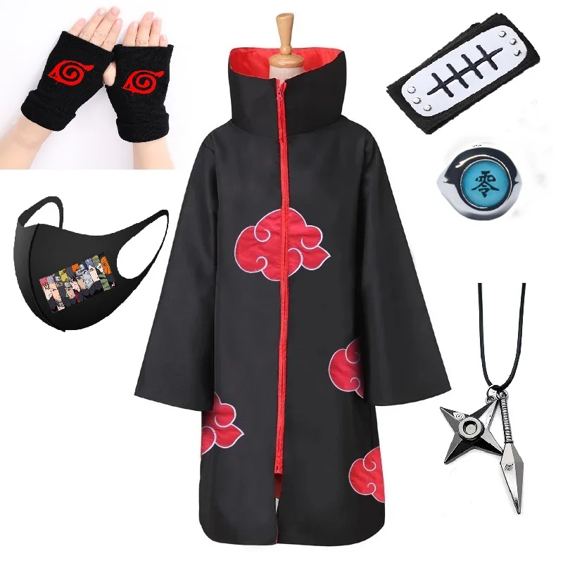 Костюм накидки Наруто 5 шт. с ожерельем и повязкой на голову, маска на лицо, Женский обитатчи от боли, костюм для косплея, длинный халат на Хэллоуин