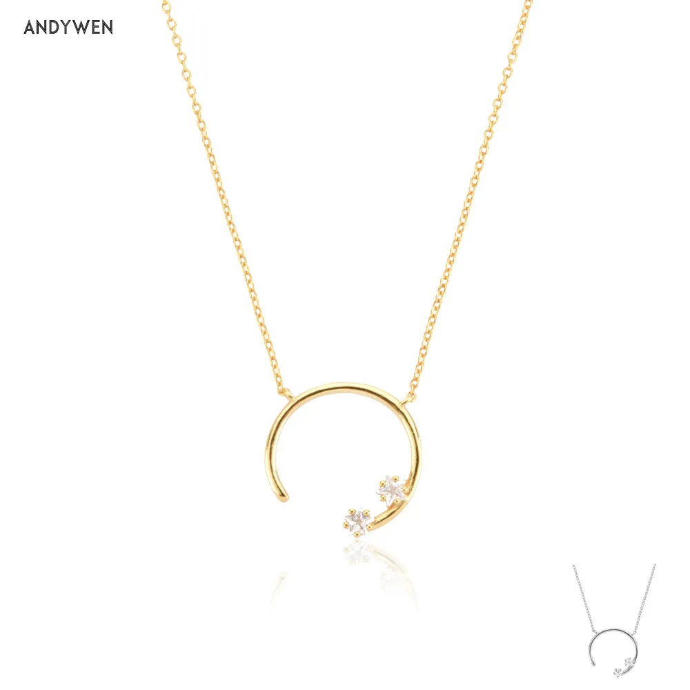 Цепочка с подвеской в виде звезды и Луны ANDYWEN, из стерлингового серебра 925 пробы, с цирконием, тонкая, 2022