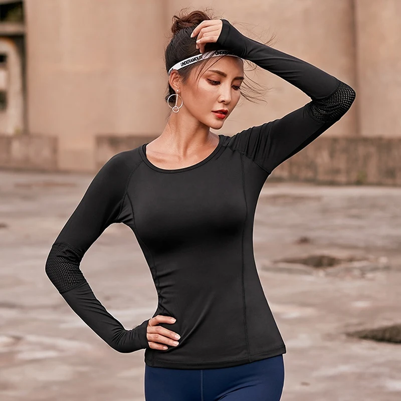 Спортивные топы, женская футболка для фитнеса, Топ с длинным рукавом, сетчатые Женские повседневные топы для спортзала, спортивная одежда, топы