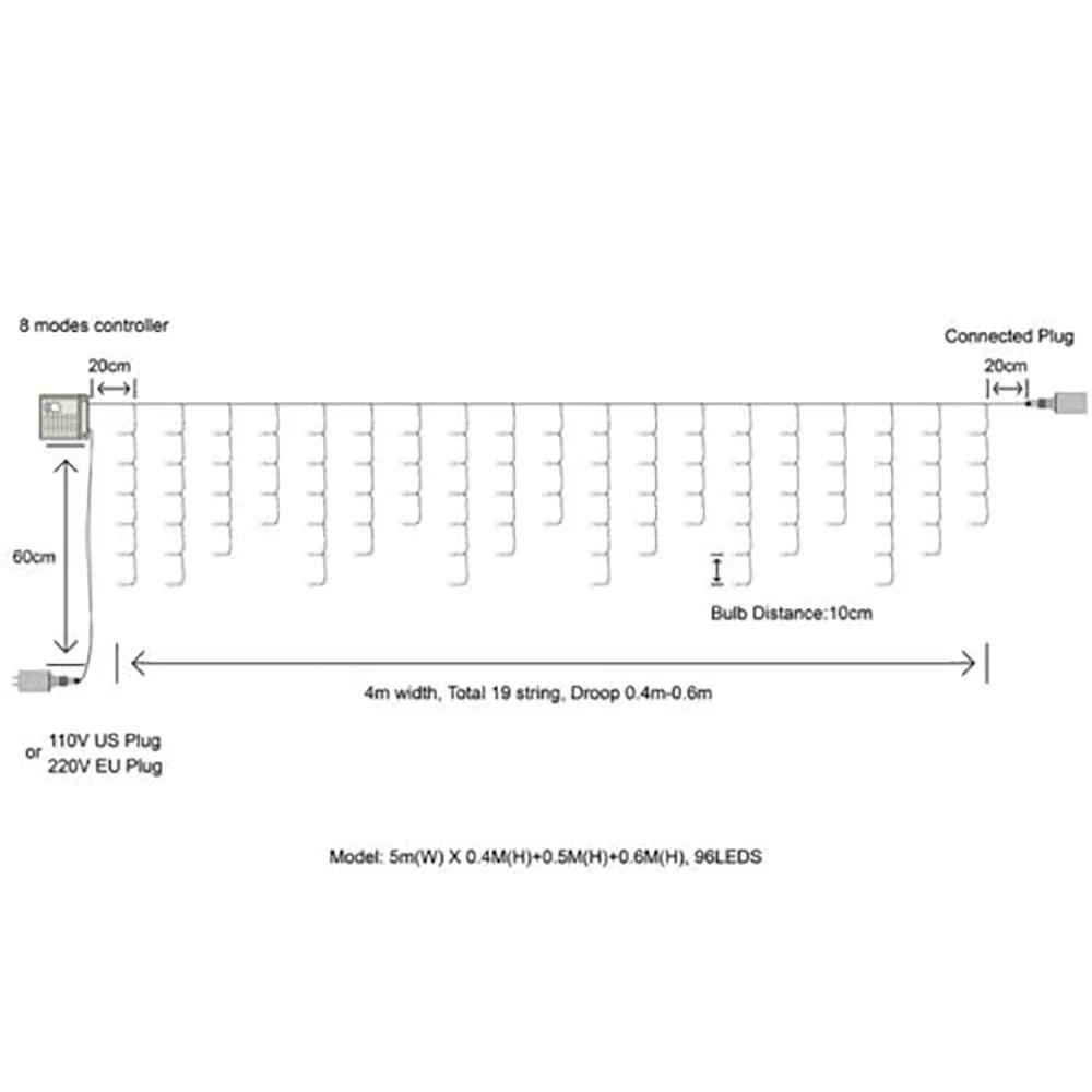 Рождественская гирлянда Водопад, уличное украшение, 5 м, свисающая светодиодная гирлянда 0,4-0,6 м, гирлянда-занавеска, украшение для вечерние ринки, сада