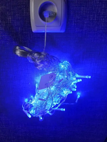 Работает, но.... Очень печально что в описании 5 метров. Мне нужно было 9.4 метра всего. Заказала 2 штуки, соединила, в итоге не хватило. Измерили по факту, 4,5 метра из которых 0,8 метра -шнур без лампочек.