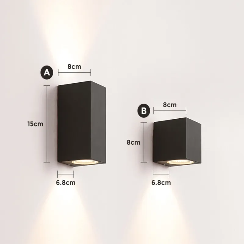 Тип: настенный светильникМатериал: алюминийЦвет изделия: черныйИсточник: Светодиодный светильник GU10Мощность: 5 Вт/10 ВтСветовой поток: 90-100 лм/ВтСветильник: холодный белый, натуральный белый, теплый белыйВодонепроницаемость: IP65Вход: 85-265 В переменного тока(Чип на плате) Срок службы: более 50000 часовСертификация: CE/RoHS