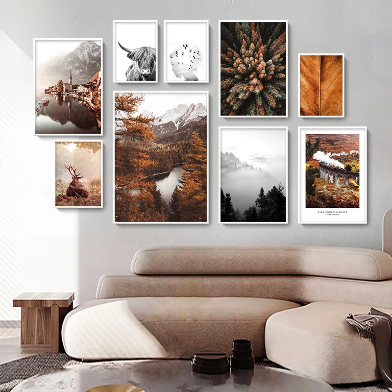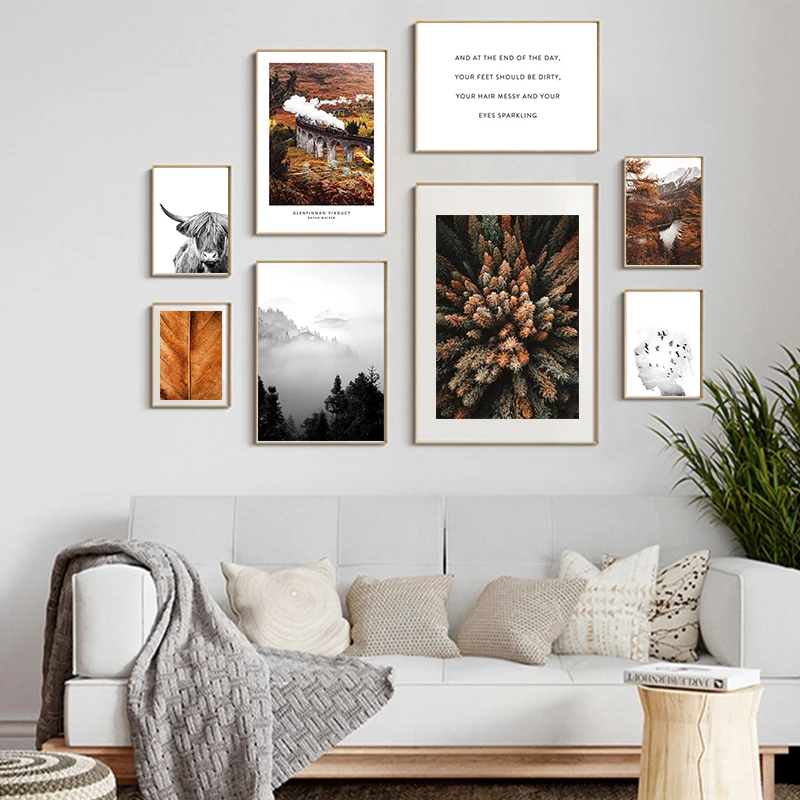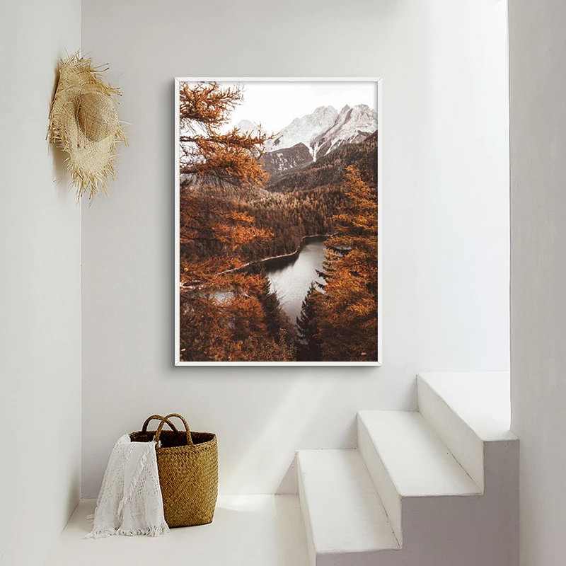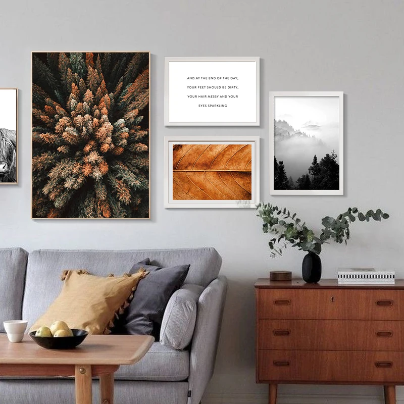 Скандинавский постер на холсте с изображением лесных листьев и морской волны, настенное искусство, пейзаж, живопись, природа, современная картина, декор для гостиной
