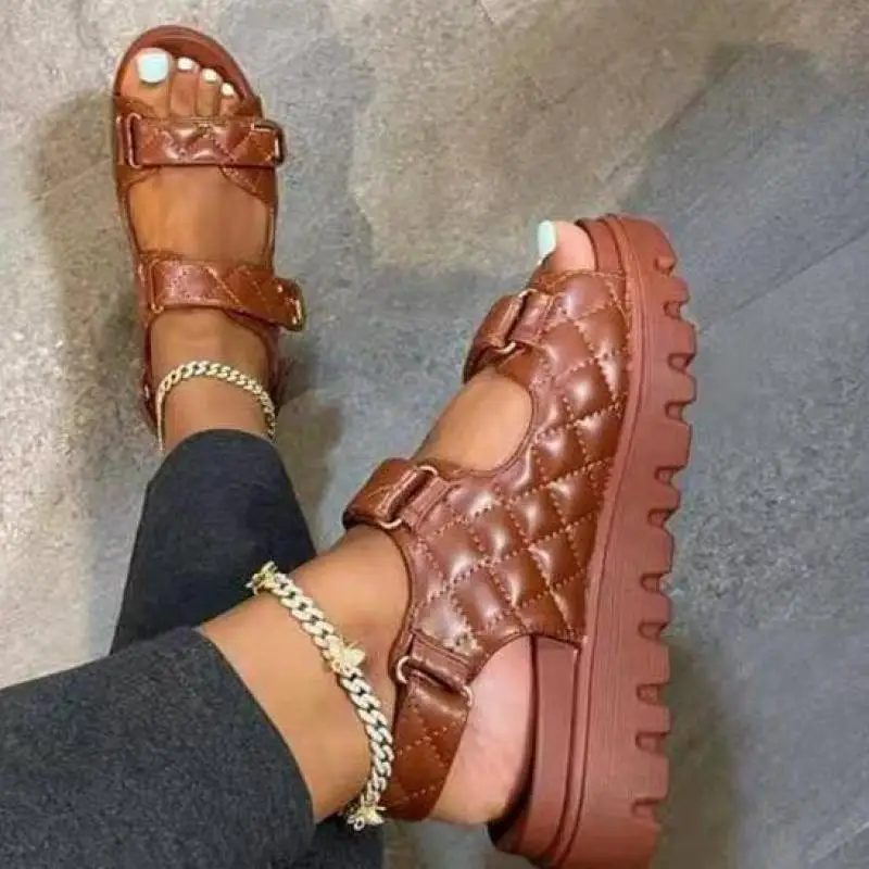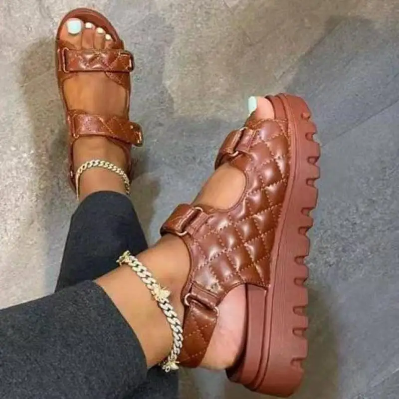 Сандалии-гладиаторы женские, на толстой подошве, с открытым носком,...