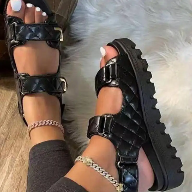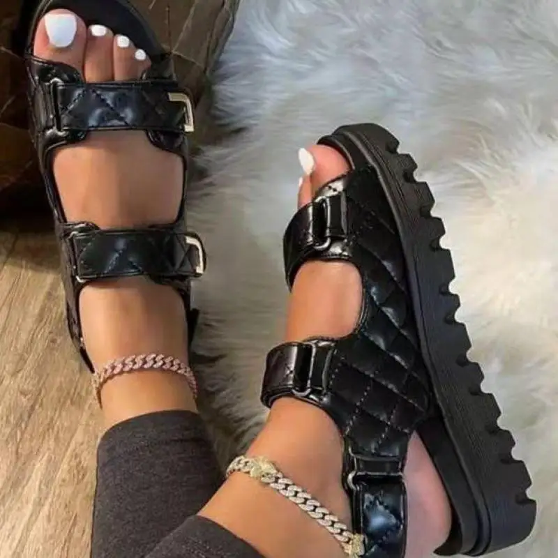 Женские сандалии с пряжкой, черные, белые, на толстой подошве, удоб...