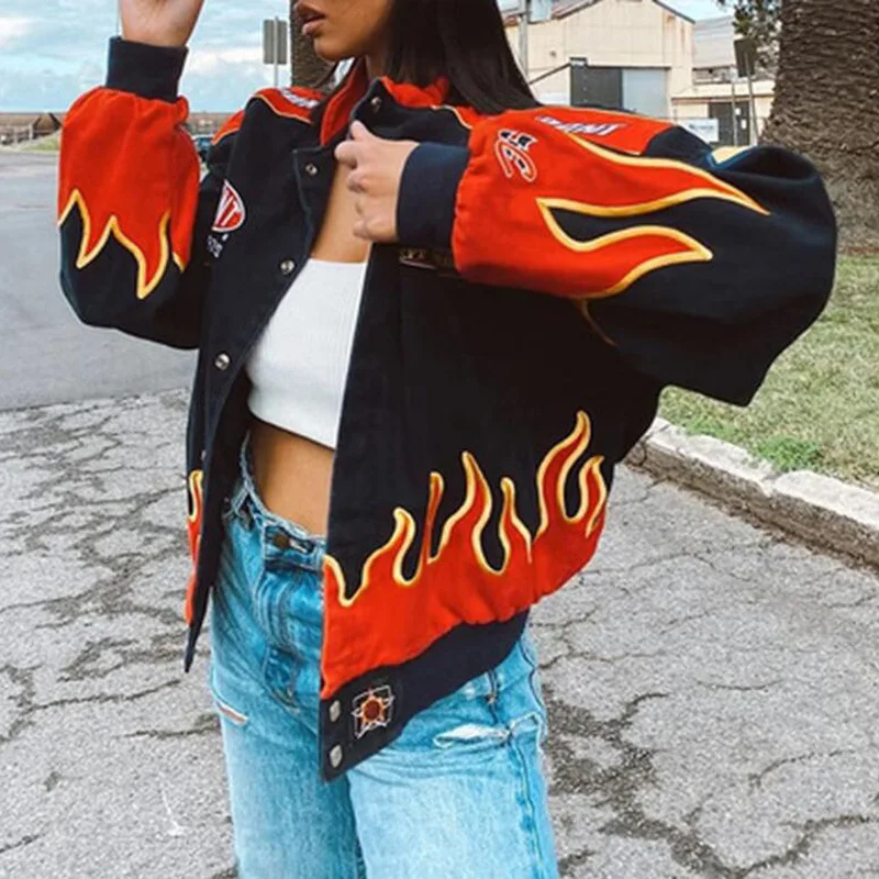 Женская зимняя куртка-гоночная куртка Y2K с принтом, куртка-бомбер ...