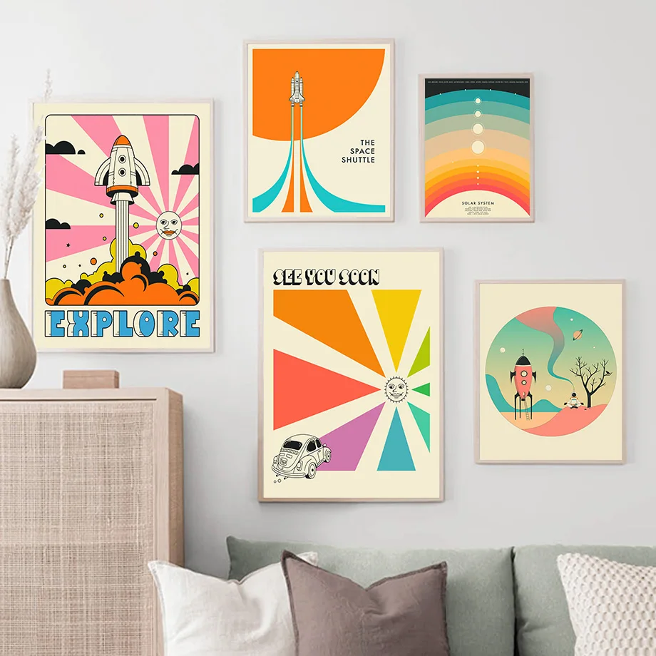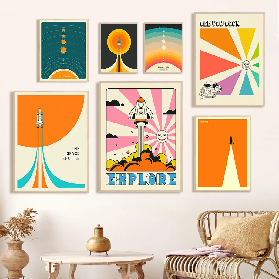 Настенная Картина на холсте с изображением астронавта на солнечной системе