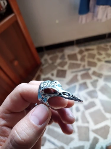 Кольцо мужское Винтажное с черепом, Вороной и клювом