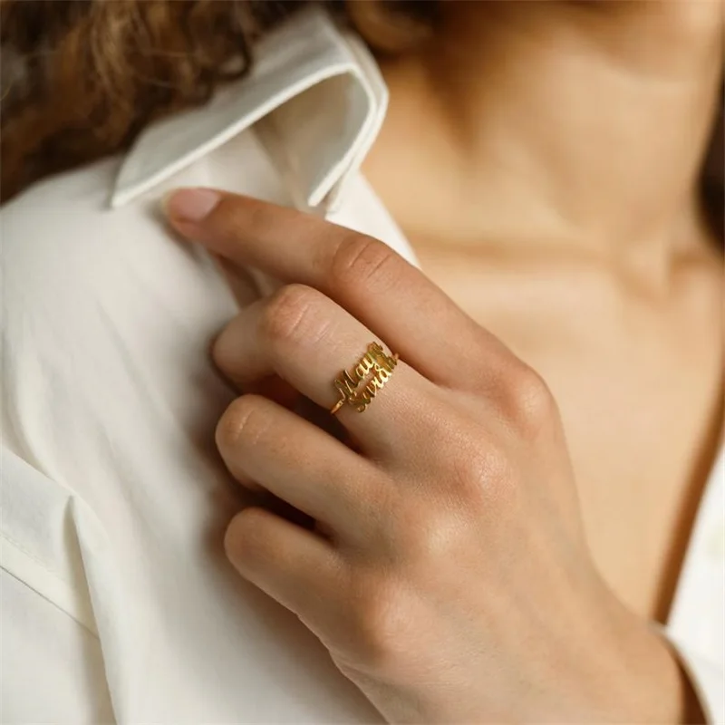 Название продукта:Персонализированные пользовательские двойные кольца из нержавеющей стали, регулируемые женские свадебные кольца для пары, кольца, уникальные ювелирные изделия, подарки