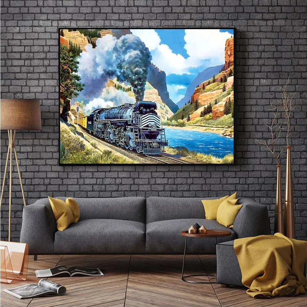 Передвижной поезд, картина из страз сделай сам, животное волка, выш...