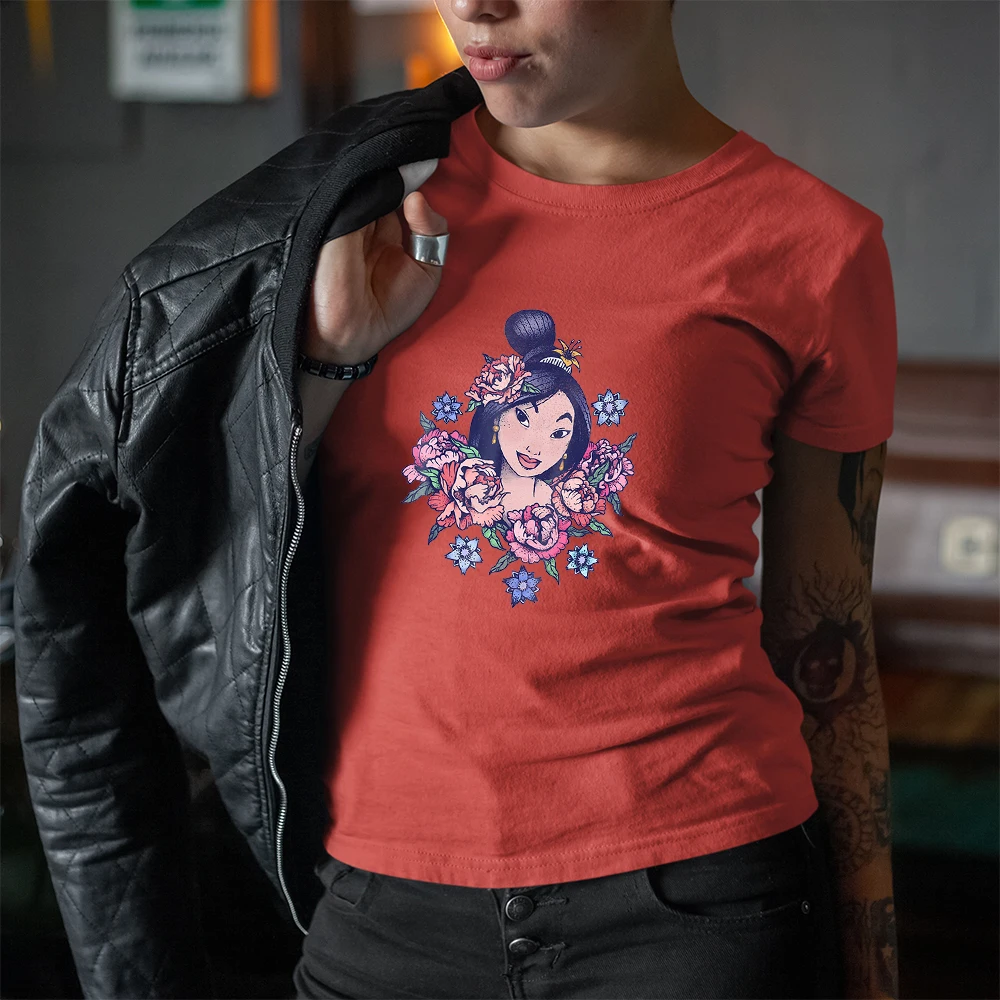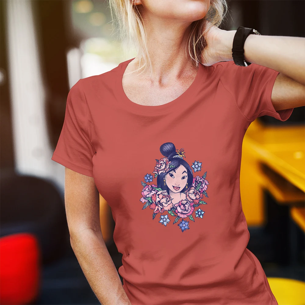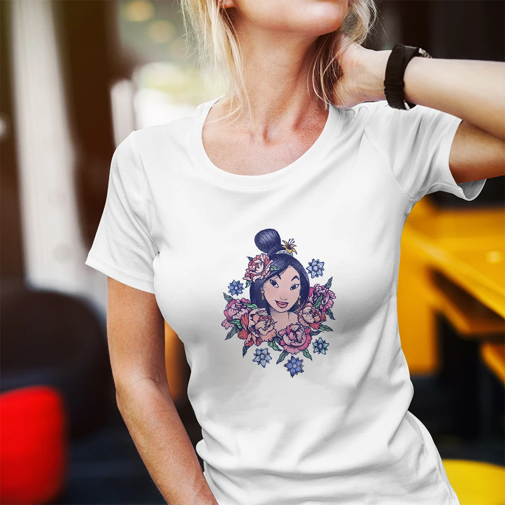 Летняя новая женская футболка с мультяшным принтом Диснея Мулан принцессы, Модный повседневный топ с прямой поставкой, одежда, футболка в стиле Харадзюку, Женский Топ