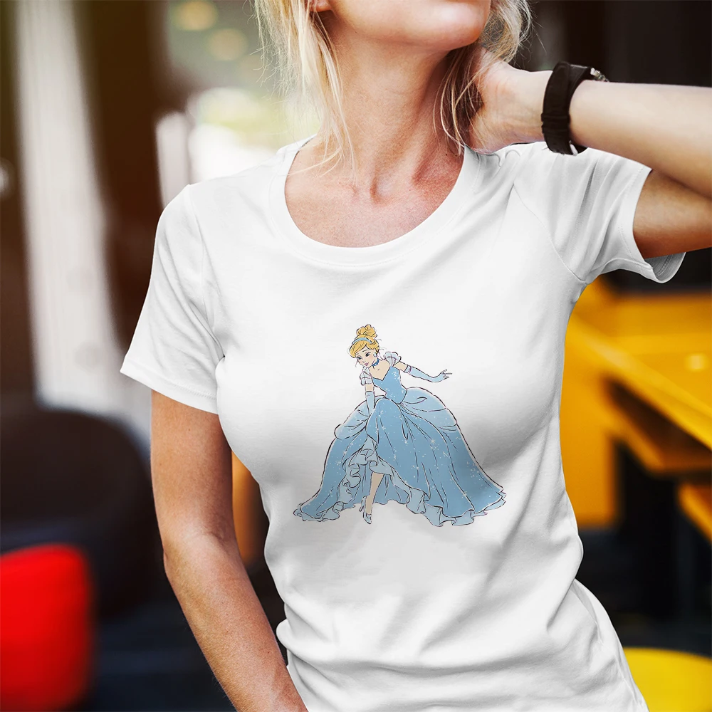 Футболка женская с принтом Золушка Disney, милая летняя рубашка с н...