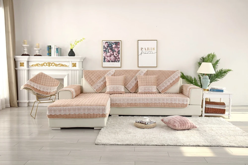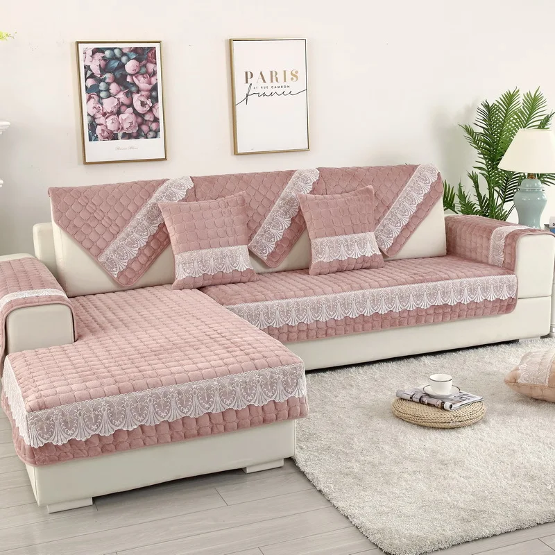 Утолщенный плюшевый чехол, мягкое полотенце для дивана, кружевное п...