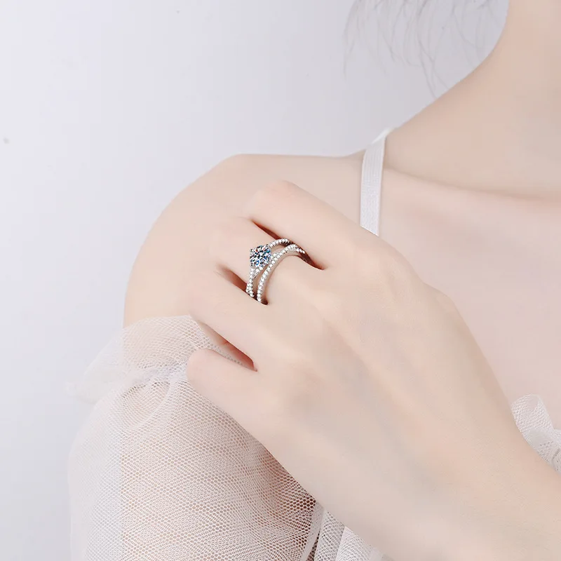 Женское кольцо с муассанитом, серебро 925 пробы, с бриллиантом