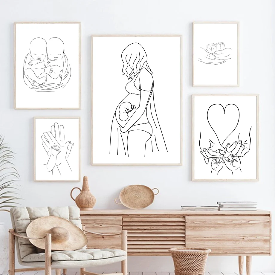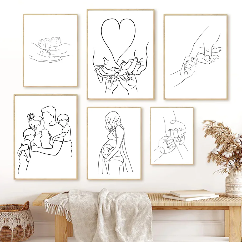 Абстрактная линия семья ребенок рука нога сердце настенное Искусств...