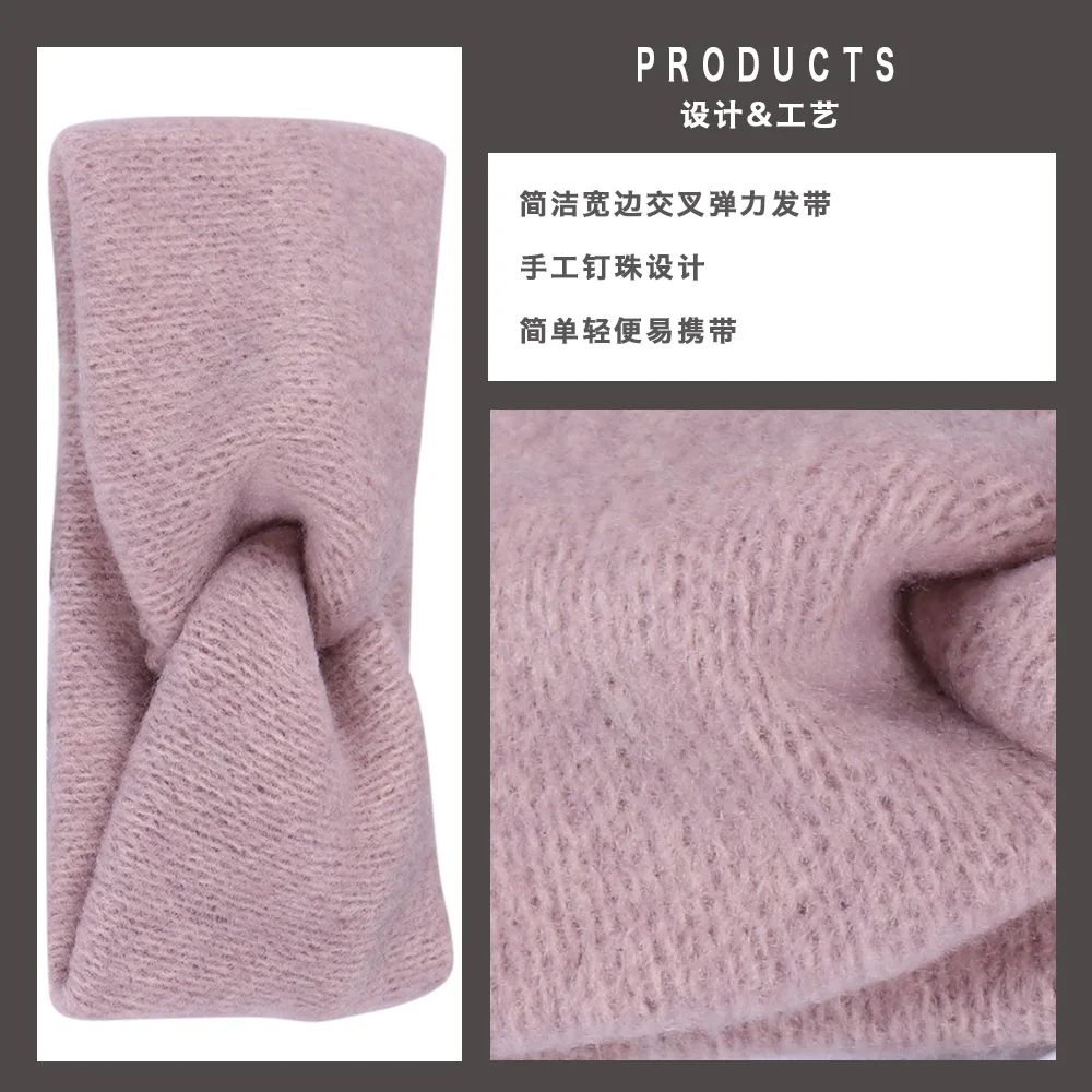 Женские эластичные повязки для волос, однотонные шерстяные повязки ...
