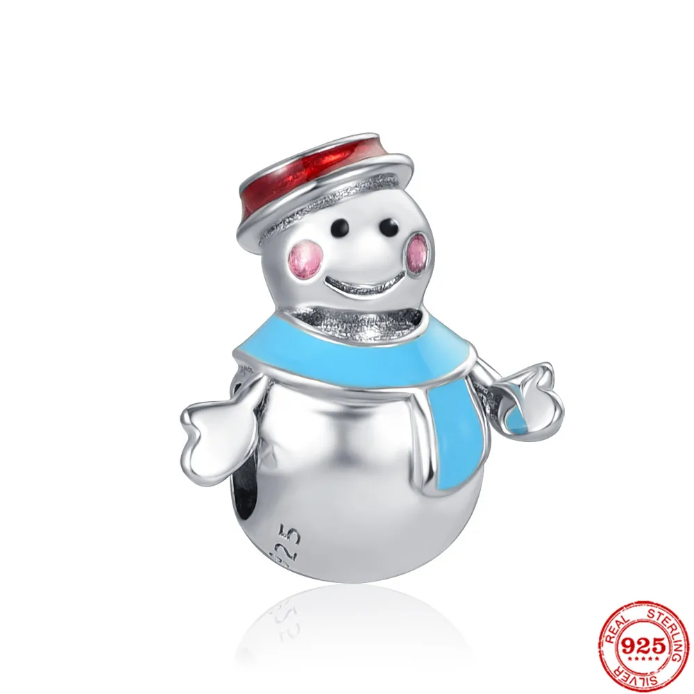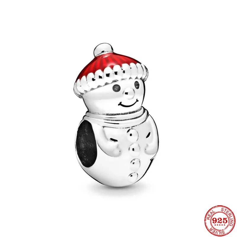 Новинка 925 г., серебро, Санта-Клаус, снеговик, снежинка, рождественская елка, Подходит для Pandora, оригинальный браслет, амулетные бусины для женщин, ювелирные изделия своими руками