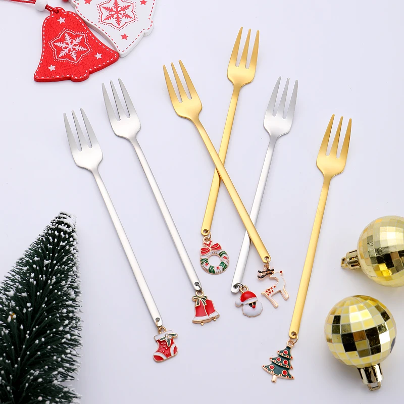 6 шт., новогодние металлические ложки для кофе, вилки, украшения дл...