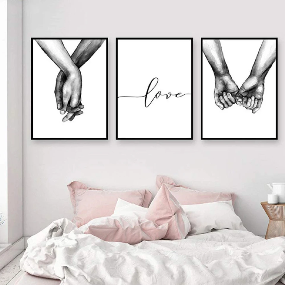 Черно-белая картина в виде сердца, держащая руки, настенная живопись, Скандинавская Алмазная мозаика, 3 шт./набор, декор для гостиной, коридора, дома