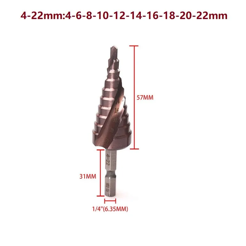 Кобальтовое ступенчатое сверло M35 5%, 3-124-226-24 мм, с шестигранной рукояткой HSS-CO, 1 шт.