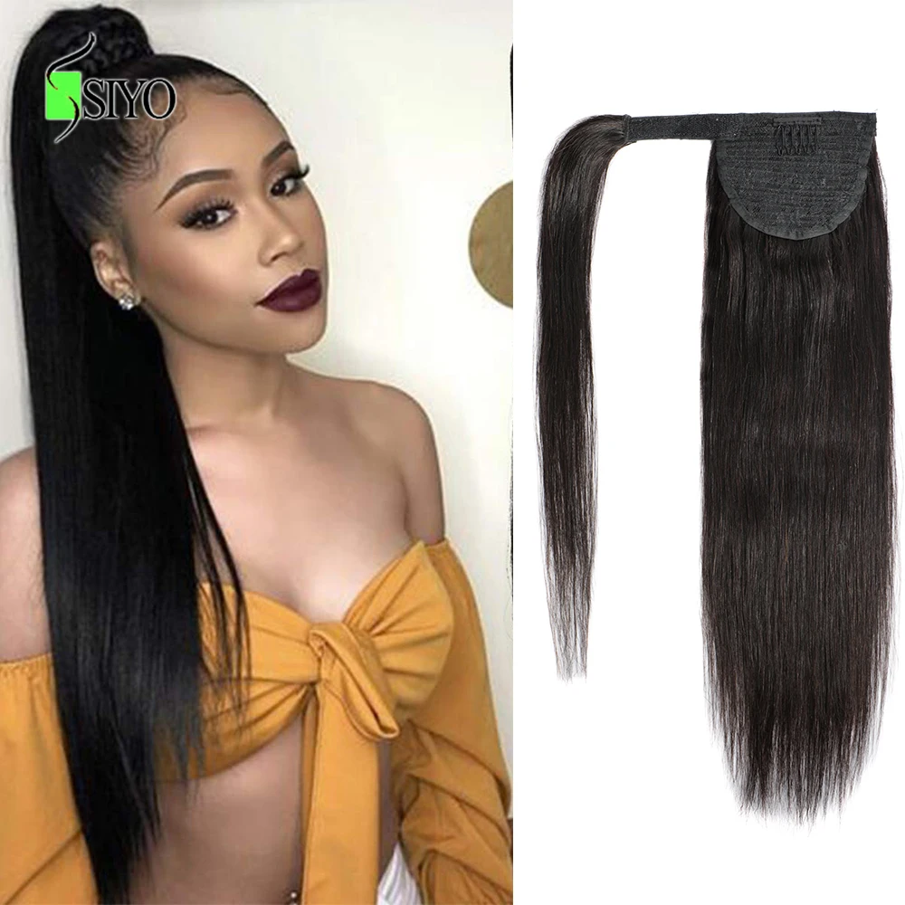 Siyo, человеческие волосы для конского хвоста, бразильские прямые в...