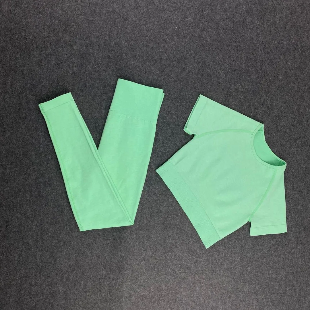 Женский спортивный комплект из двух предметов Seamles, фиолетовый укороченный топ, футболка, бюстгальтер, леггинсы, спортивный костюм, одежда для тренировок, одежда для фитнеса, комплекты для йоги и спортзала