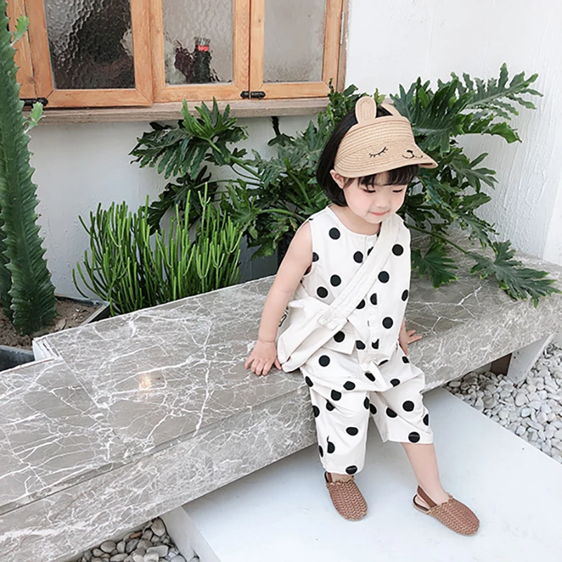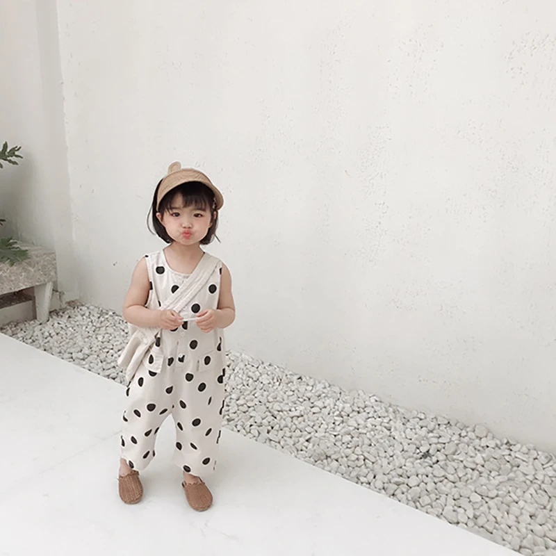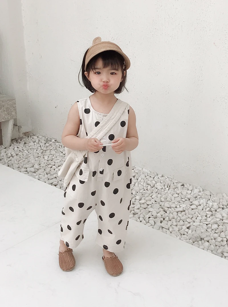 Комбинезон детский в горошек, без рукавов, с карманами