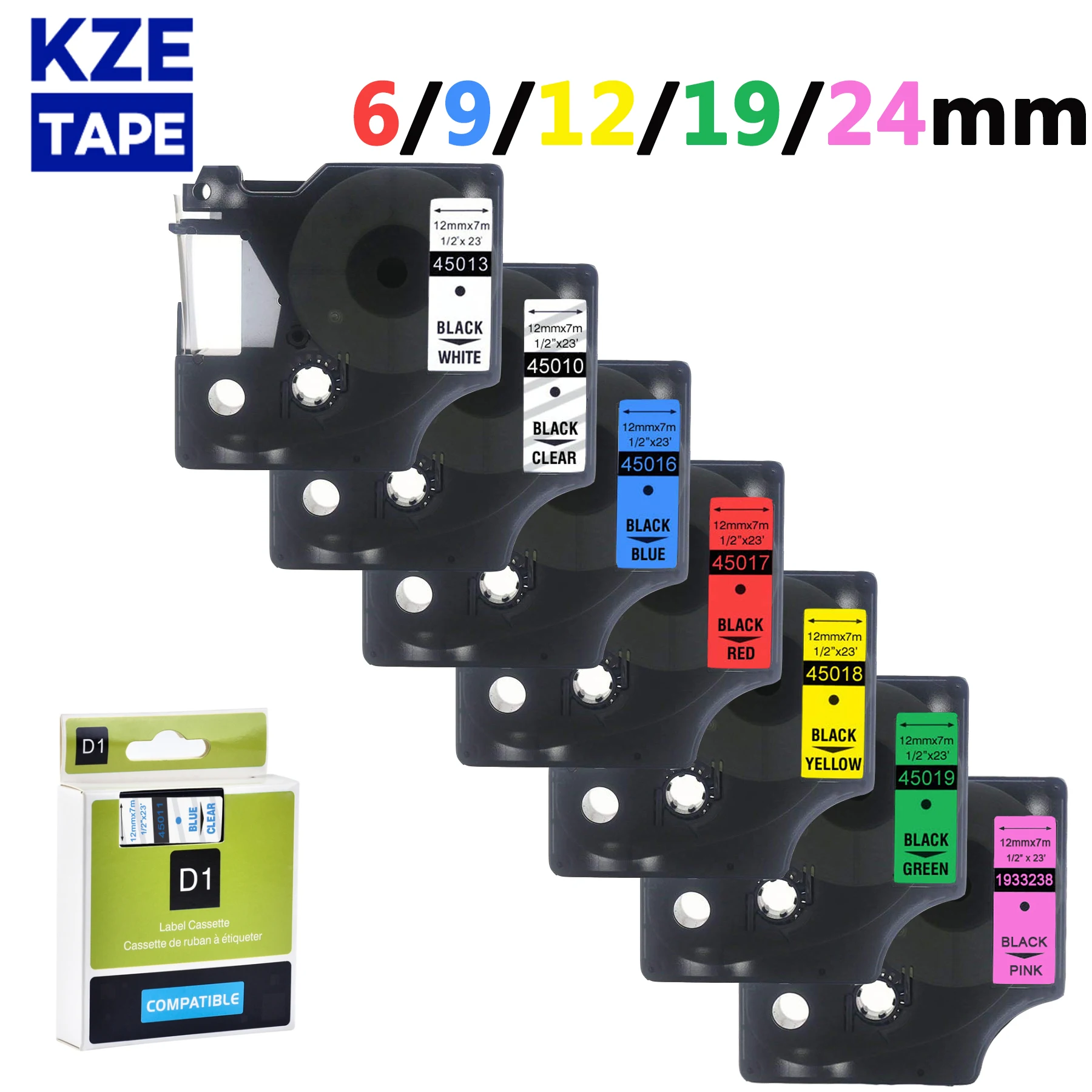Кассета для этикеток KZE, разноцветная, 6 мм, 9 мм, 12 мм, 19 мм, 24 мм, совместимый с Dymo, D1Label, для Dymo label manager, LM 160, 280
