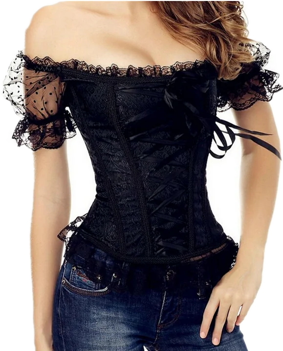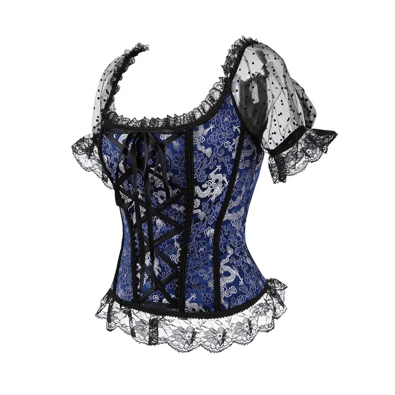 Женский винтажный сексуальный корсет с рукавом, топ с открытыми плечами, костюмы для бурлеска, цветочные кружевные бюстье, корсеты на бретелях