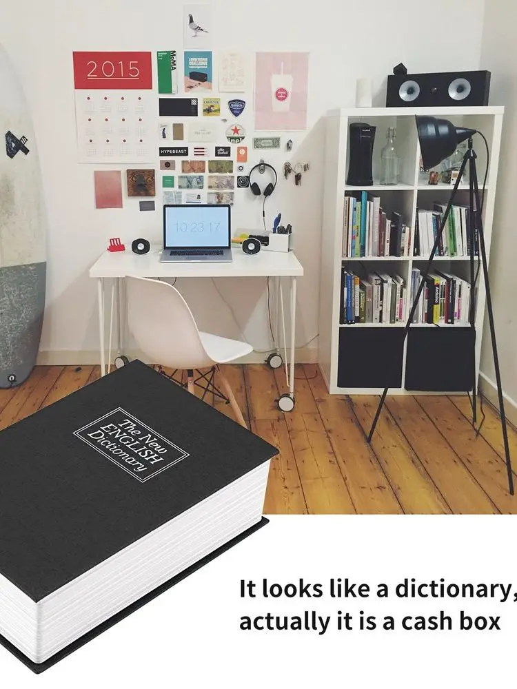 Особенности:100% новый и высококачественныйПохоже на словарь, на самом деле это кассовый ящик«Словарь» добавил ощущение таинственности в ваш книжный шкаф!Место для хранения дополнительных наличных денег, украшений и т. д.Портативный для путешествий.Сейфы для отвлечения обеспечивают идеальное укрытие и обеспечивают легкий доступ к своим ценностям.Эти уникальные сейфы позволяют спрятать ценные вещи внутри обычных предметов домашнего обихода-одно из последних мест, куда подумал бы вор.Фантастический роскошный Сейф для книг, прочная металлическая конструкция, прочный и надежный, чтобы сохранить деньги, украшения или любое другое хранение призов в безопасности и сохранностиИдеально подходит для использования дома или в офисе.Описание: