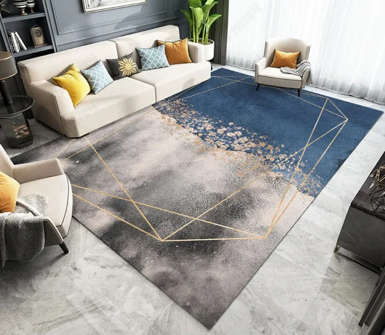 Современный и простой стиль, синий, золотой, серый и белый разноцветный коврик с пятнами, удобный полноразмерный ковер для гостиной