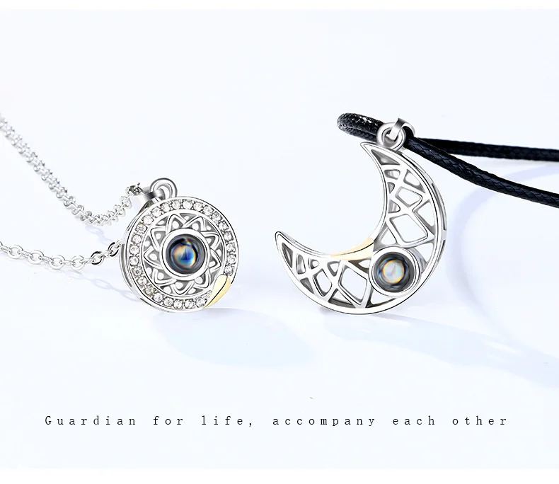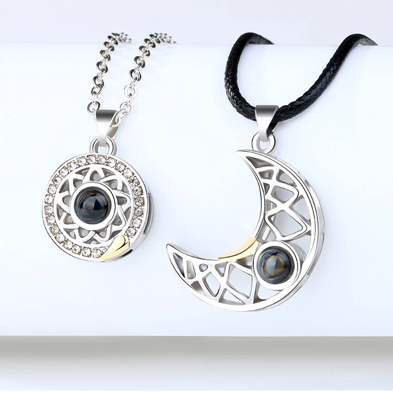 Ожерелье для пары 2 шт., магнитное проекционное ожерелье с камнем на присоске, креативные Подвески с изображением Солнца и Луны, ювелирные изделия для мужчин и женщин, новинка 2021