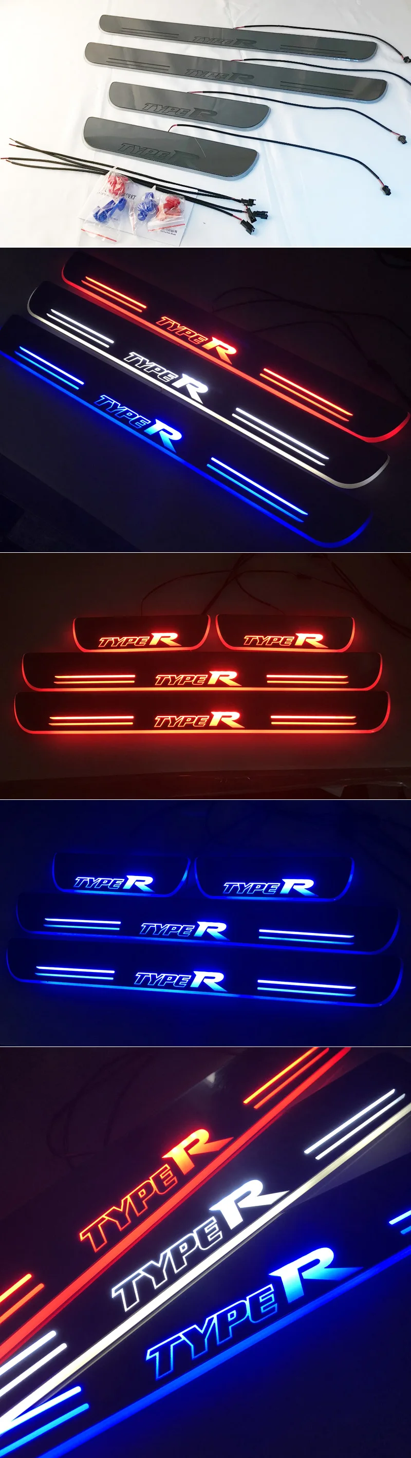 Автомобильная наклейка, акриловая движущаяся светодиодная подсветка на педаль, Накладка на порог, порог, дорожсветильник для Honda Civic Тип R
