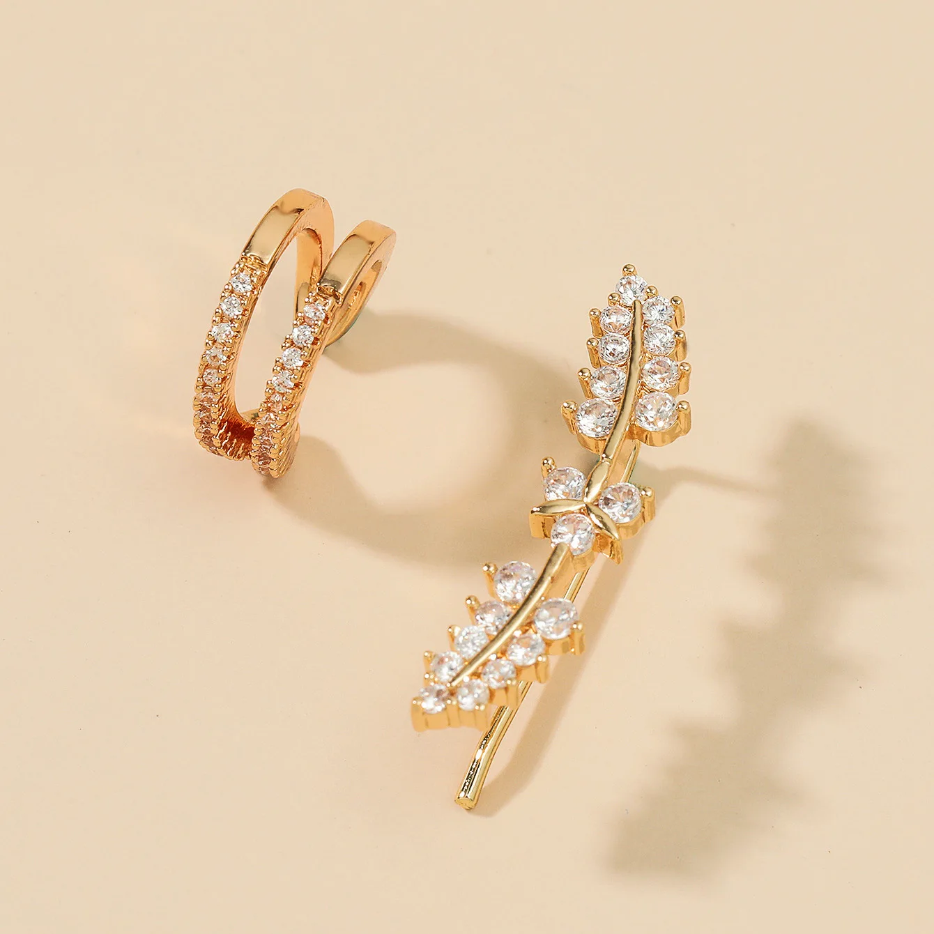 Женские Геометрические серьги-гвоздики с фианитами, в форме листьев
