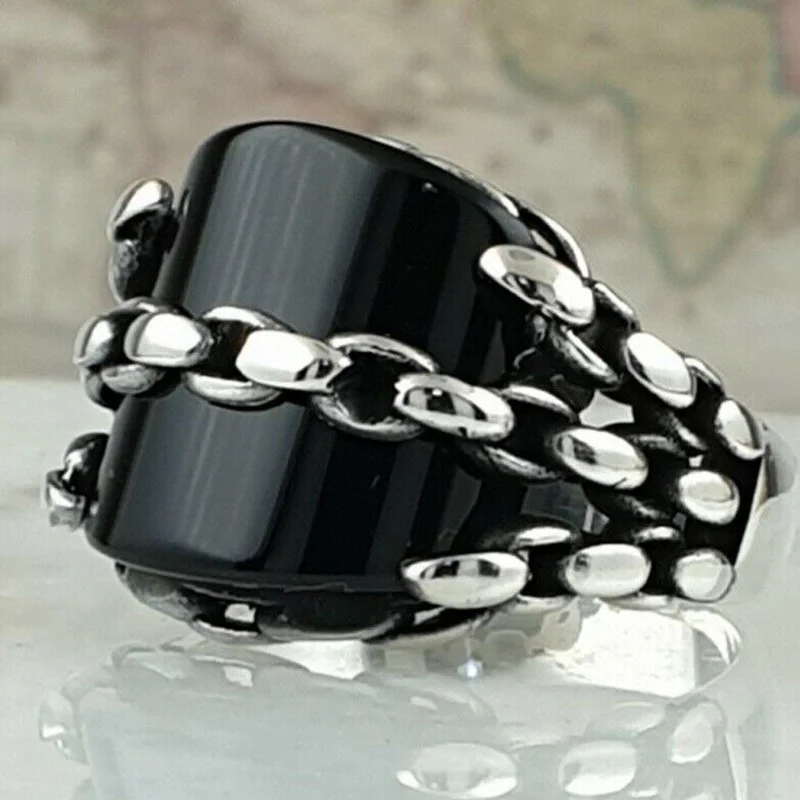 Мужское черное кольцо на палец в стиле хип-хоп с квадратным кристаллом геометрической формы с цепочкой для вечерние ринки свадьбы помолвки модные ювелирные изделия