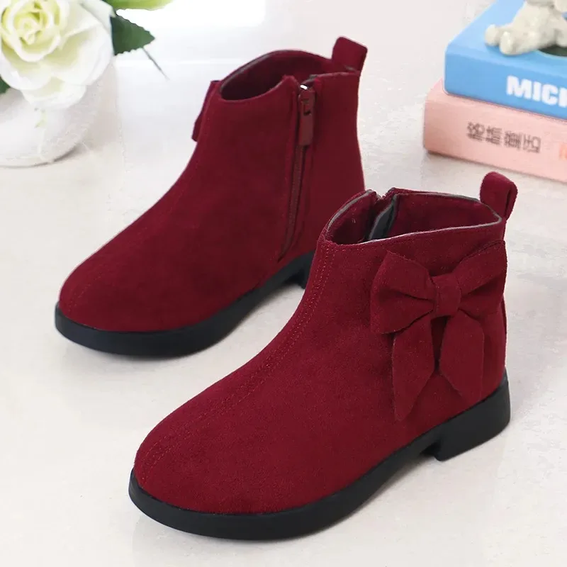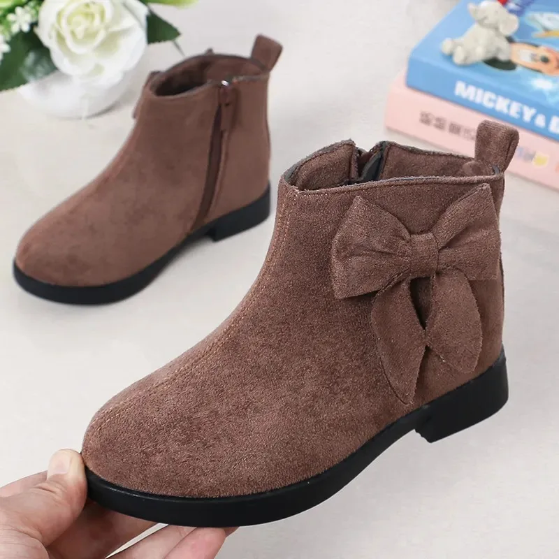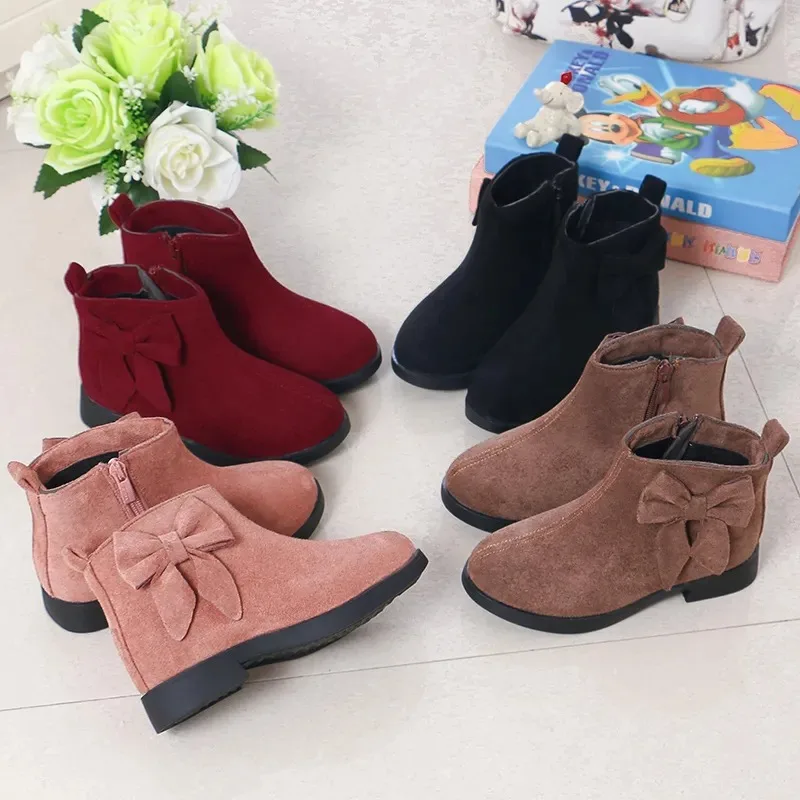 Детские полуботинки со шнуровкой для девочек, детская корейская модная модель, короткие сапоги с бантом, розовые туфли хаки, новинка От 5 до 12 лет