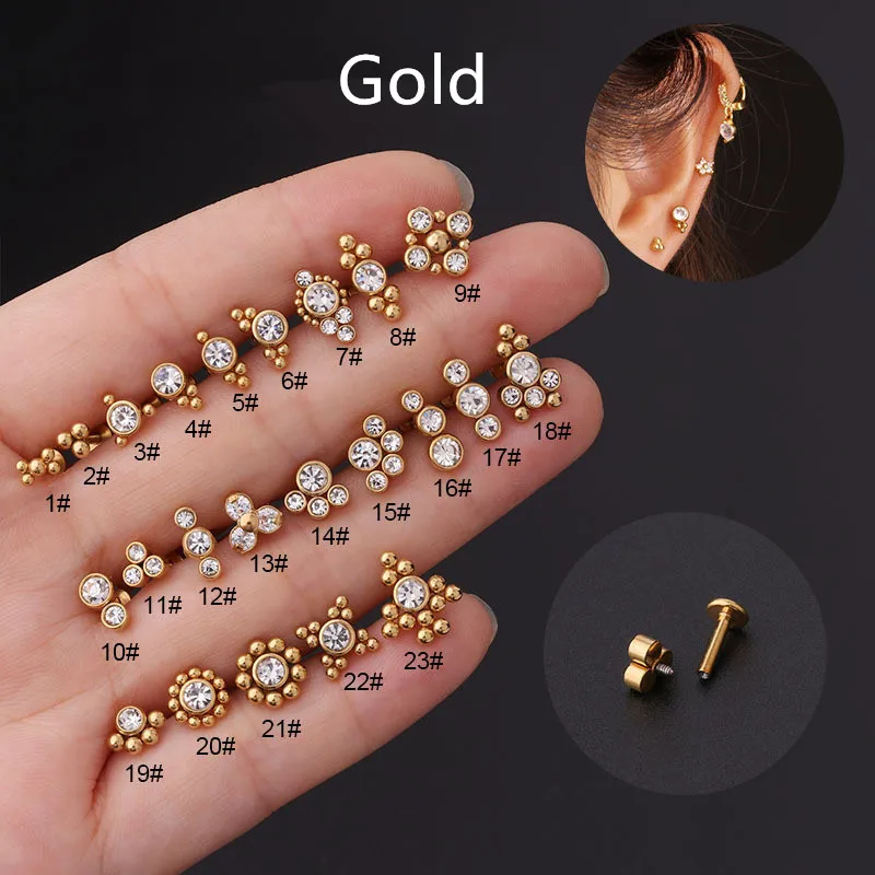 Серьги-гвоздики из нержавеющей стали, с плоской задней частью, с внутренней ушной хрящ Хеликс, 1 шт.