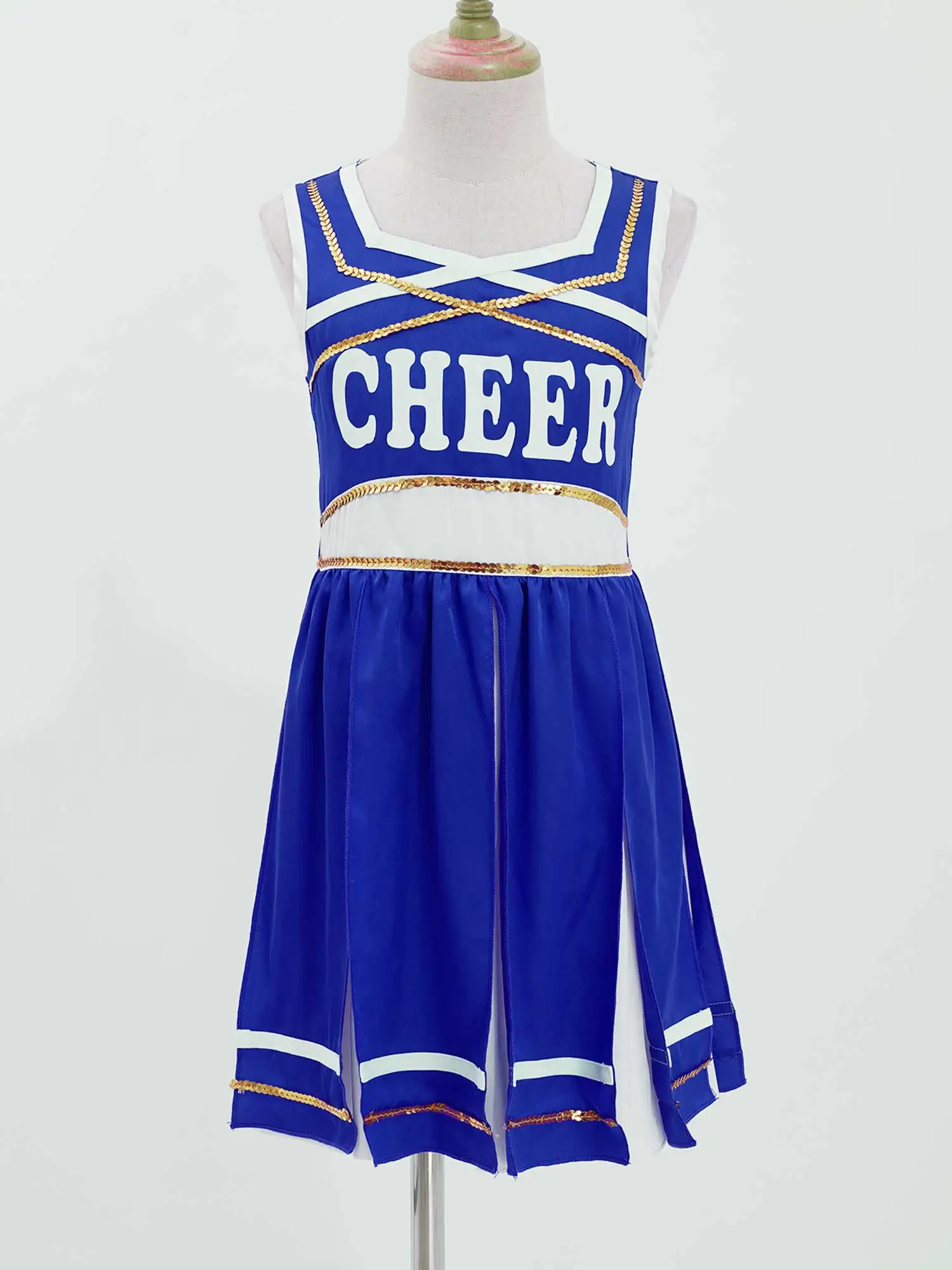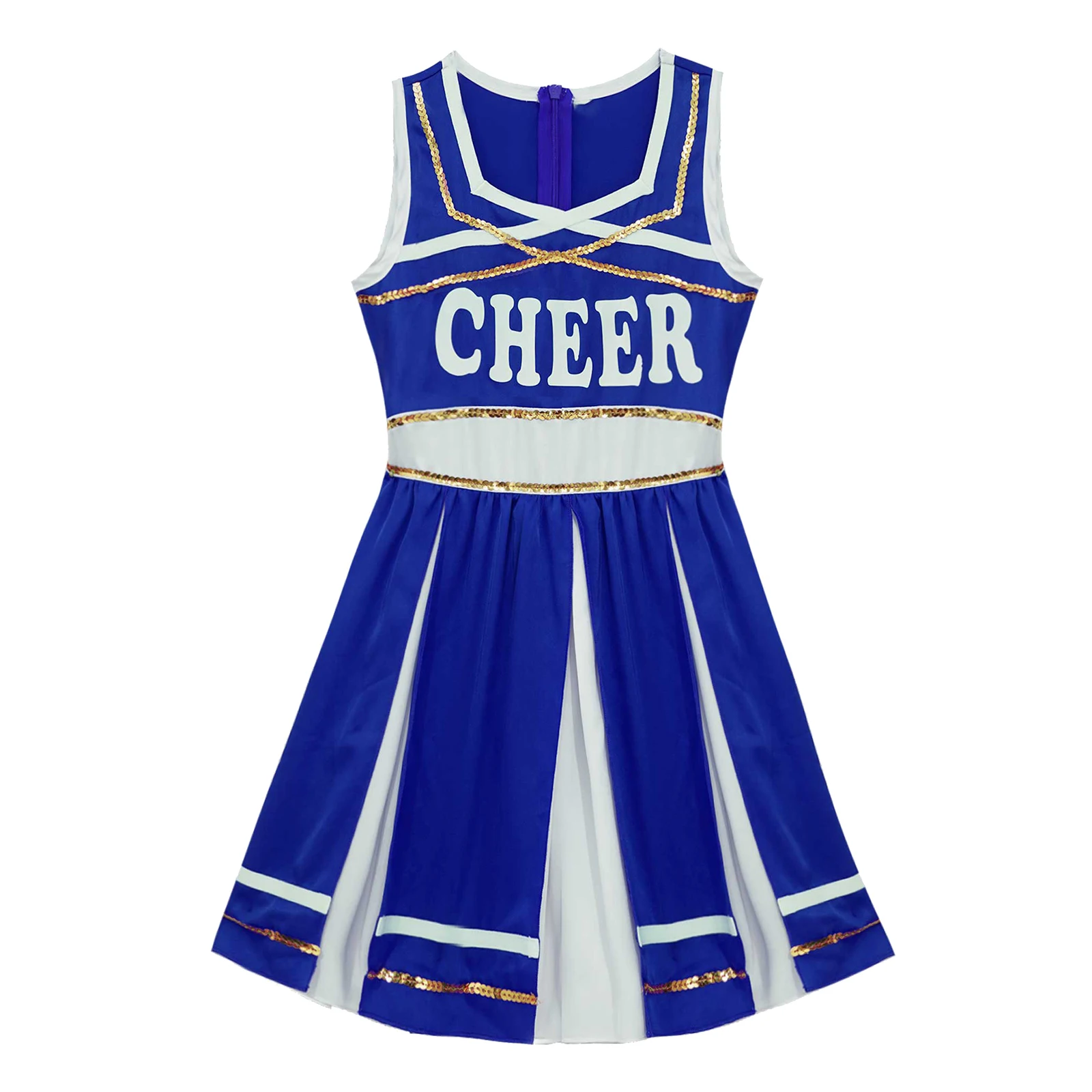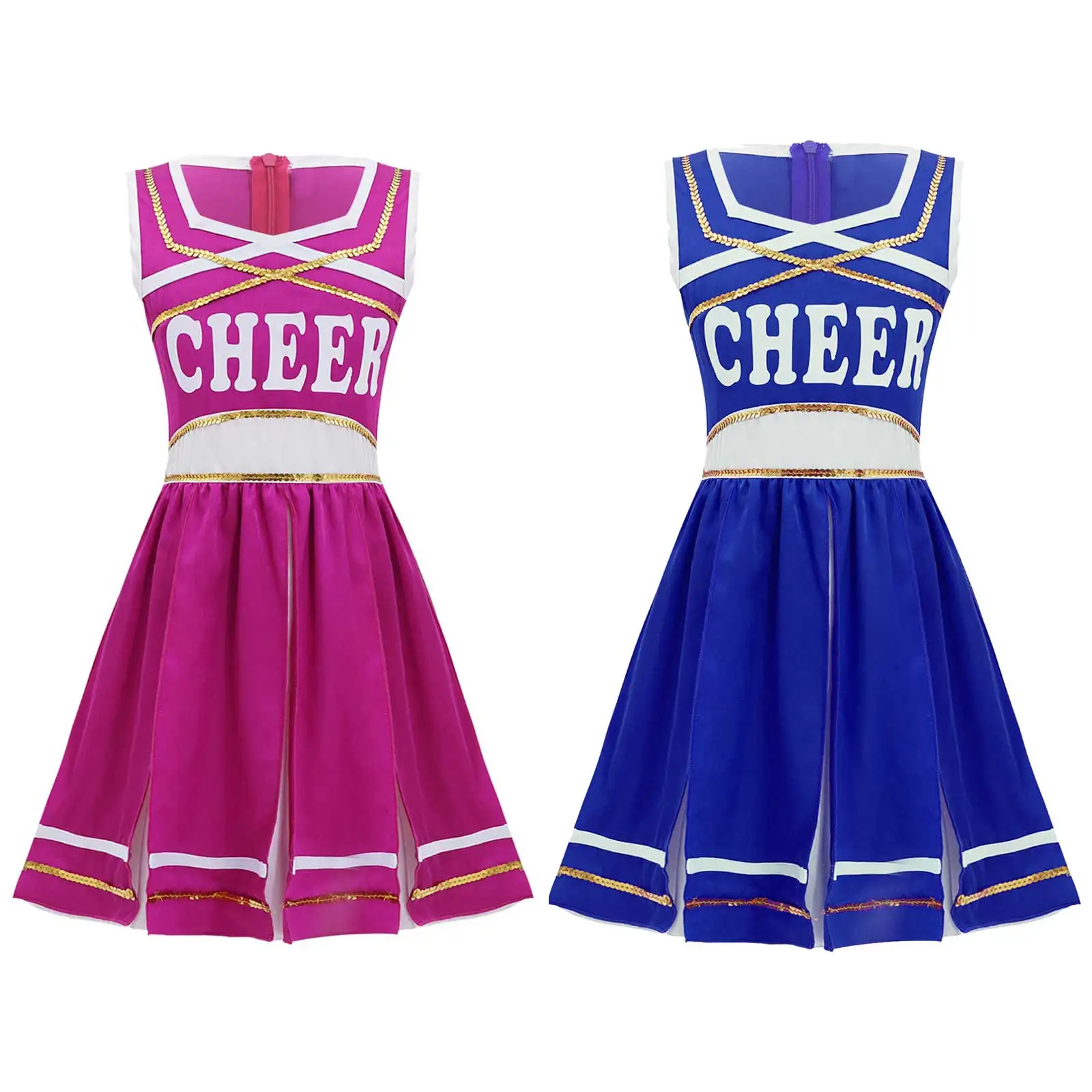 Костюм Чирлидера для девочек, школьный маскарадный костюм, детское лоскутное платье с блестками, танец Черлидинга