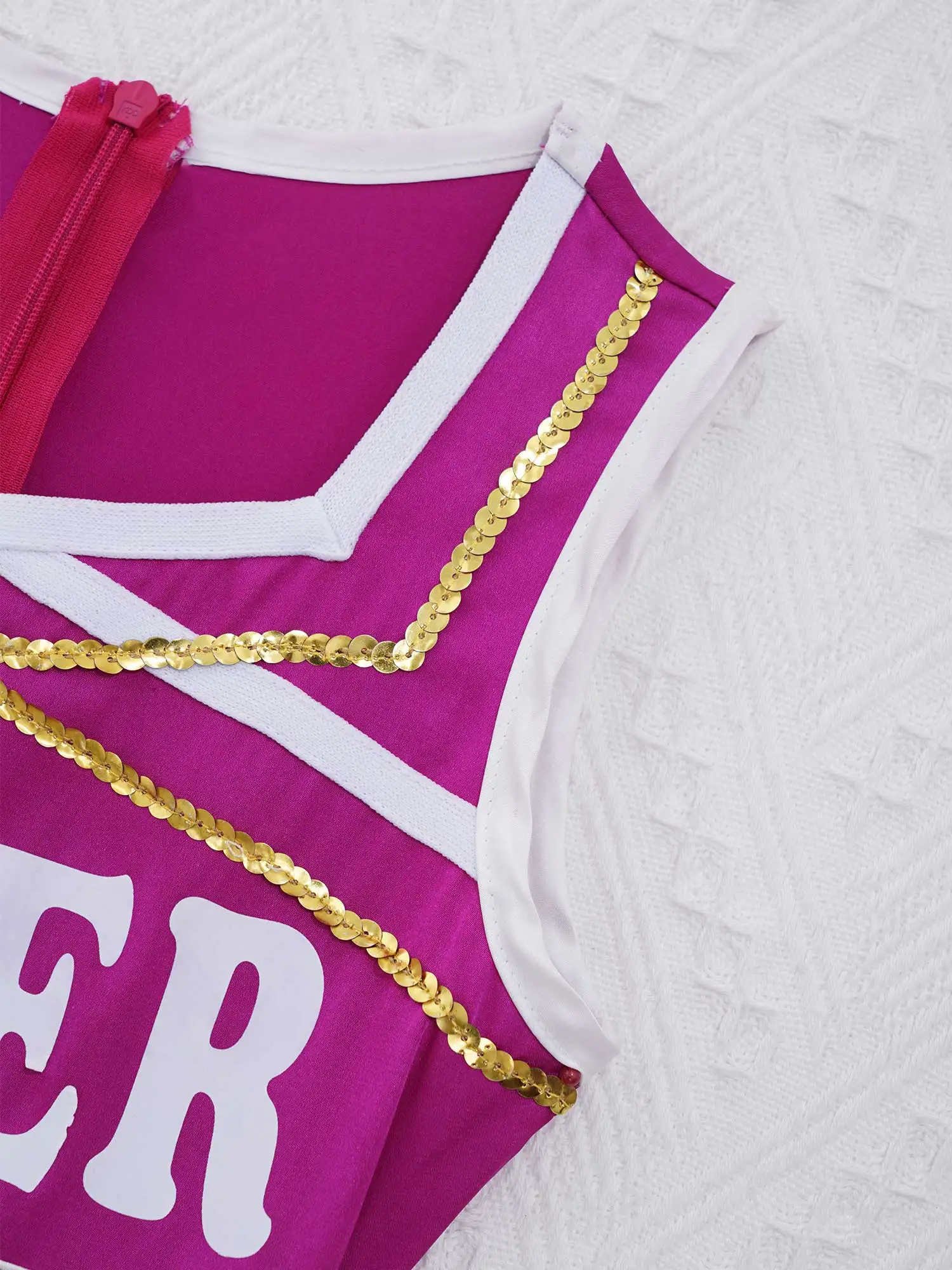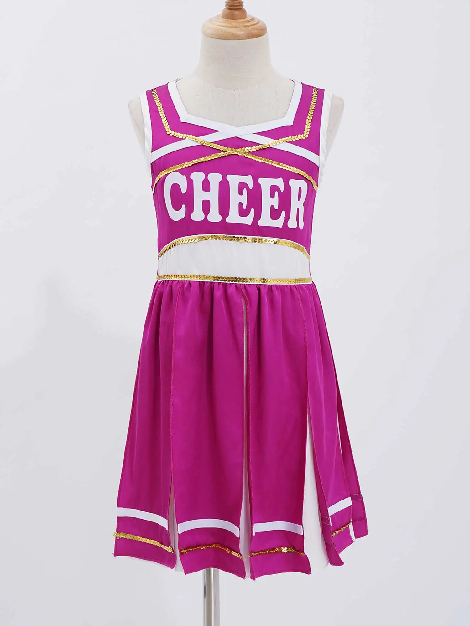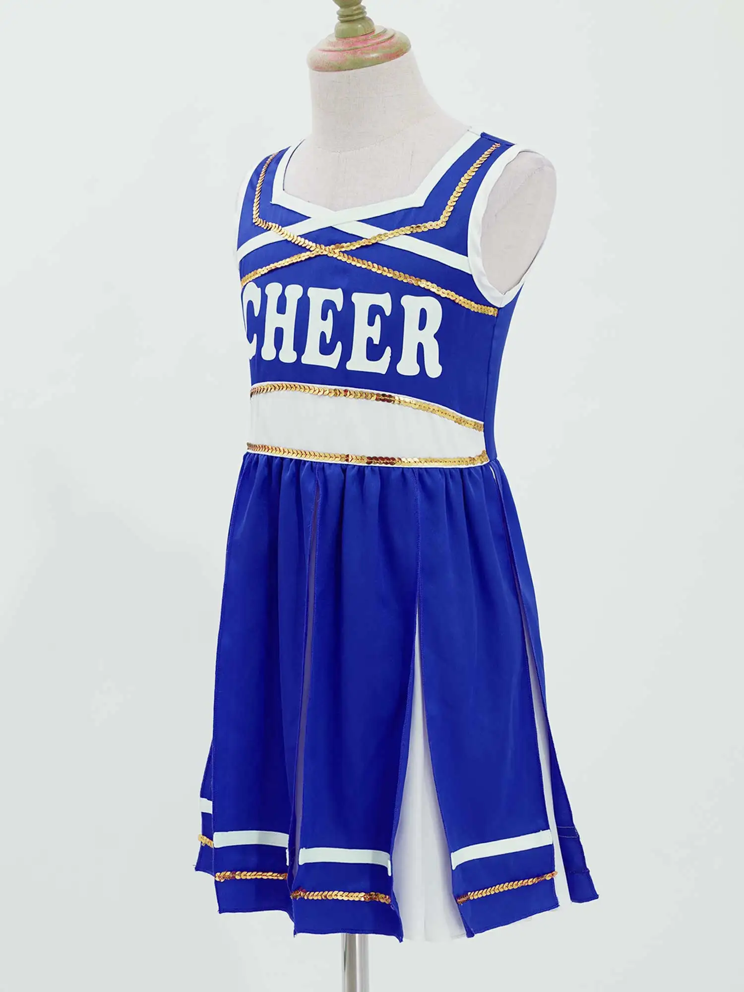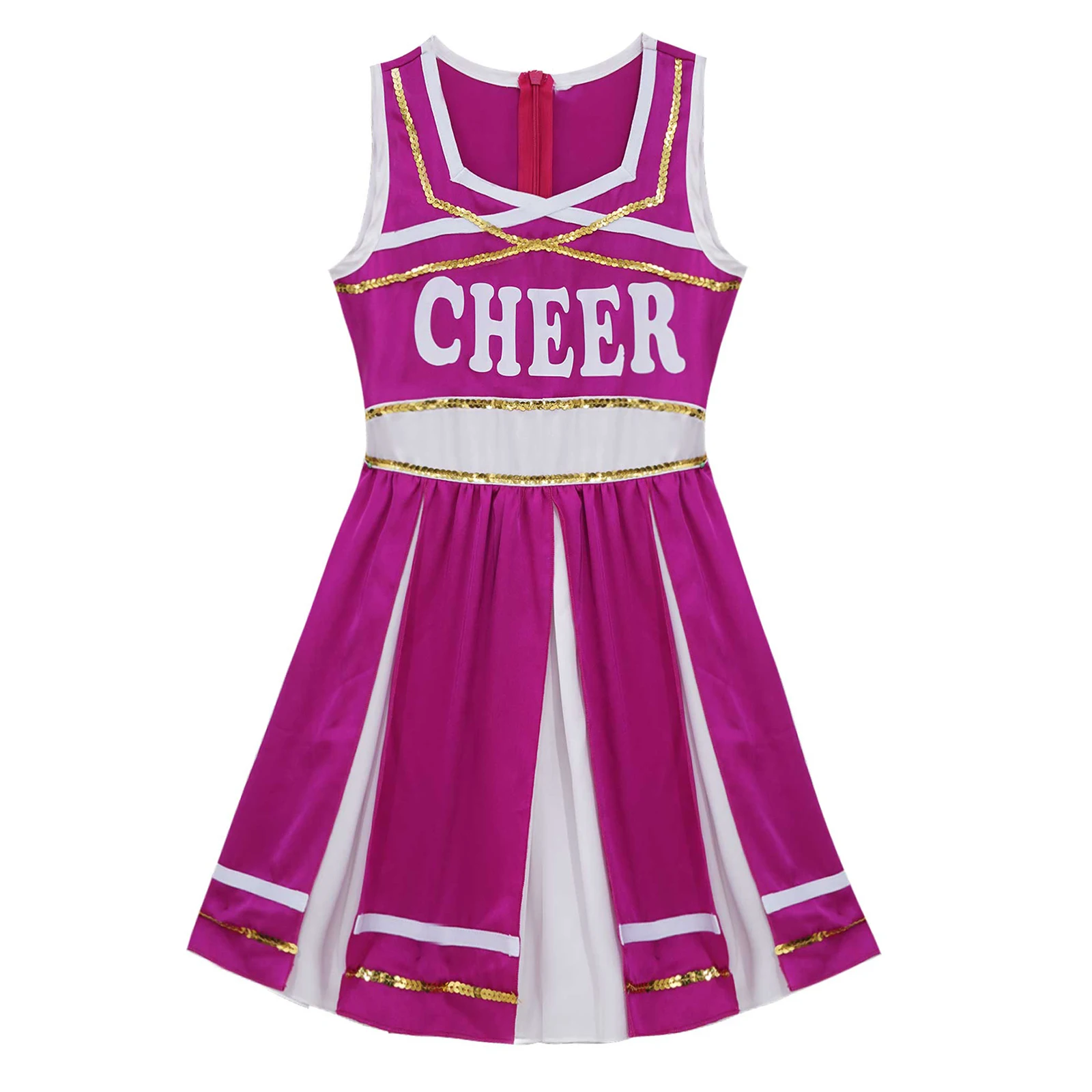 Костюм Чирлидера для девочек, школьный маскарадный костюм, детское лоскутное платье с блестками, танец Черлидинга