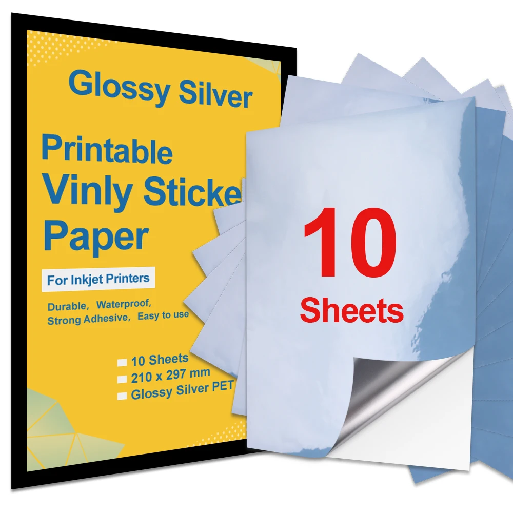 10 листов, Блестящая Серебристая бумага для бумаги A4, этикетки A4, наклейки для струйной печати