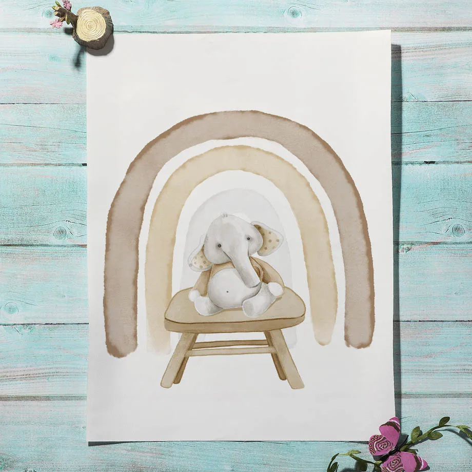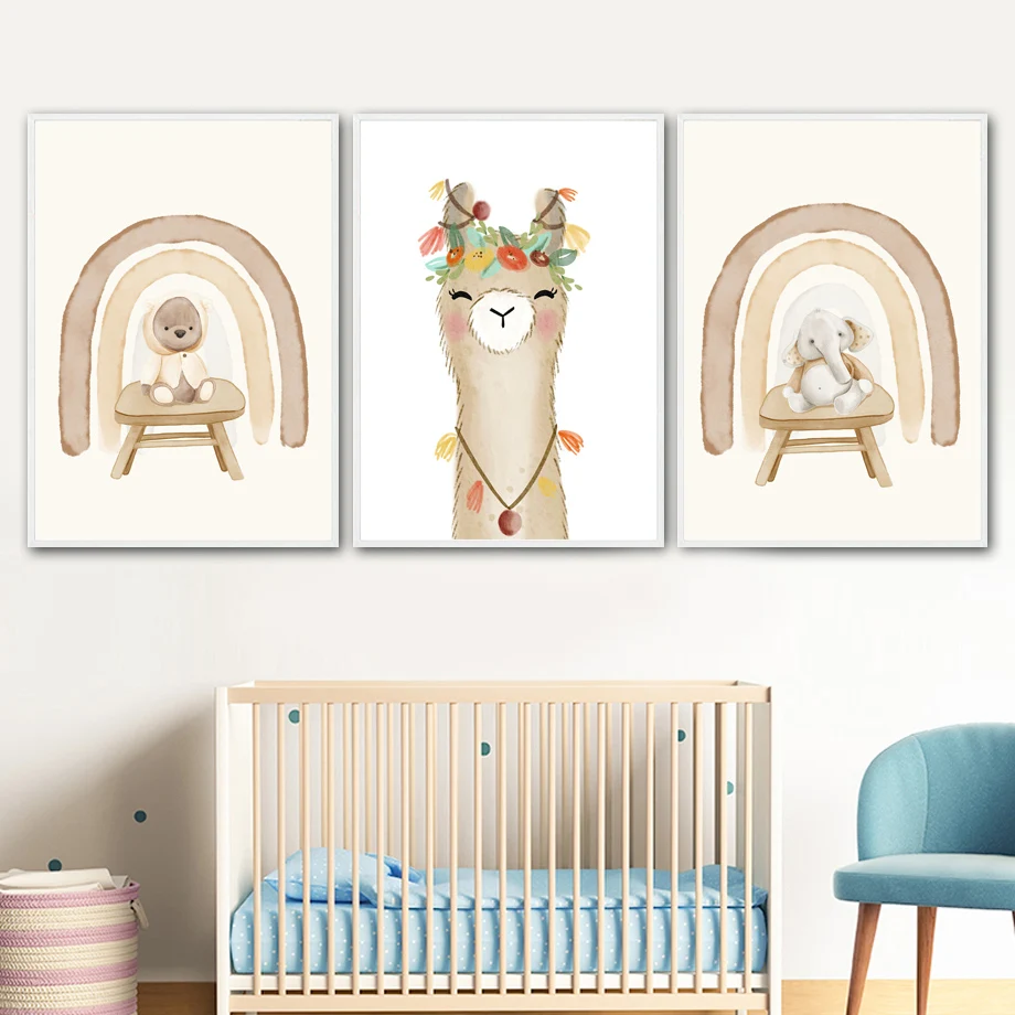 Бохо кролик Альпака слон медведь Радуга настенная живопись холст скандинавские постеры и принты настенные картины декор для детской комнаты