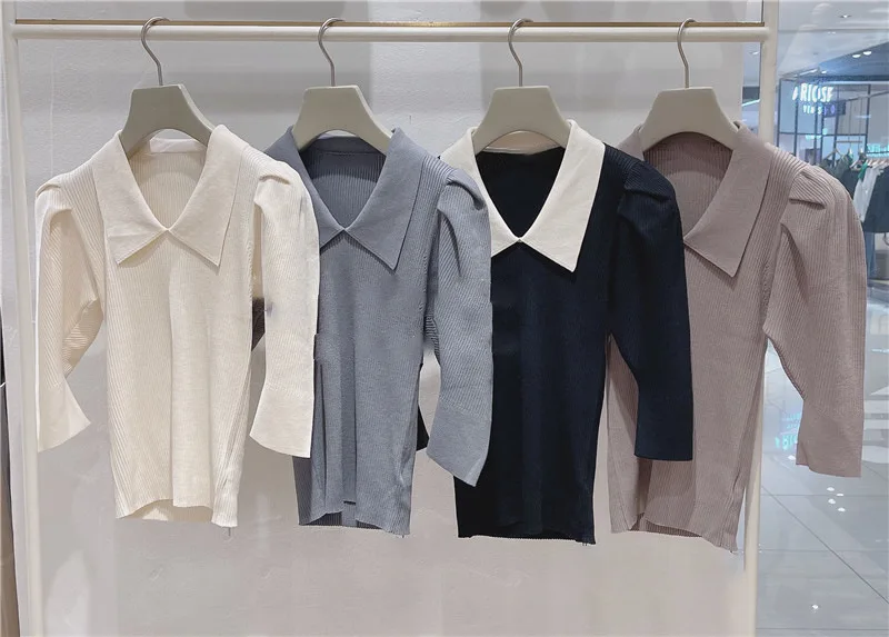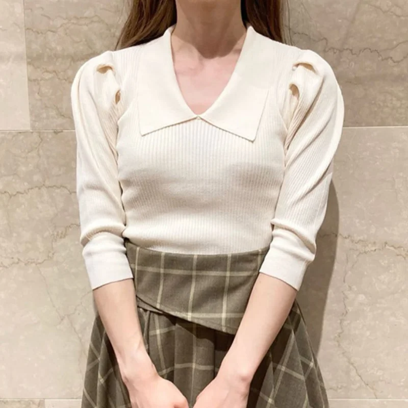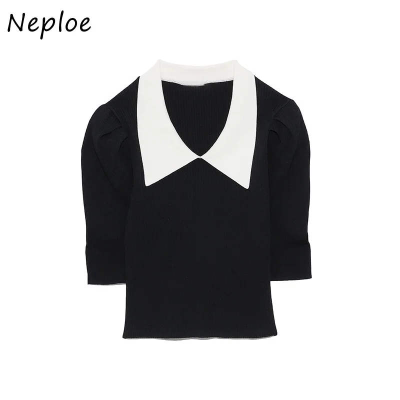 Новинка осени 2022, Модный Милый джемпер Neploe, приталенный вязаный пуловер с отложным воротником и рукавом до локтя, женские свитера в японском стиле