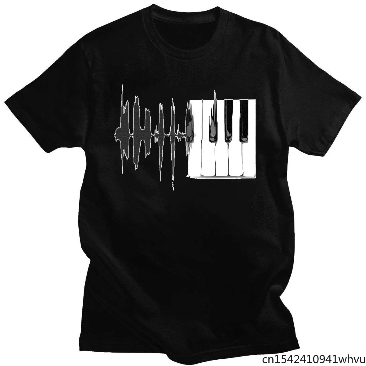 2021 черная футболка с принтом пианино и коротким рукавом с круглым вырезом, нейтральная Летняя Повседневная модная футболка