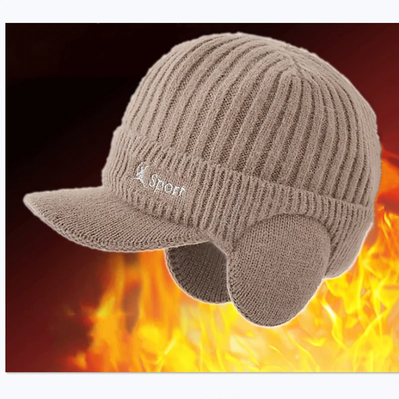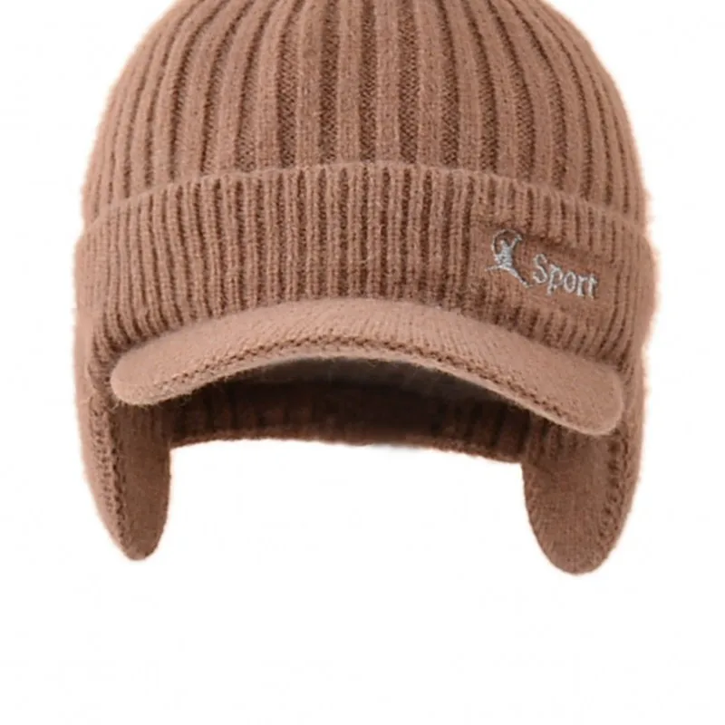 Новинка 2021, зимняя теплая вязаная шапка с защитой ушей, мужская шапка-бомбер, толстые ветрозащитные поля, уличные лыжные кепки для верховой езды, мужская бейсбольная шапка
