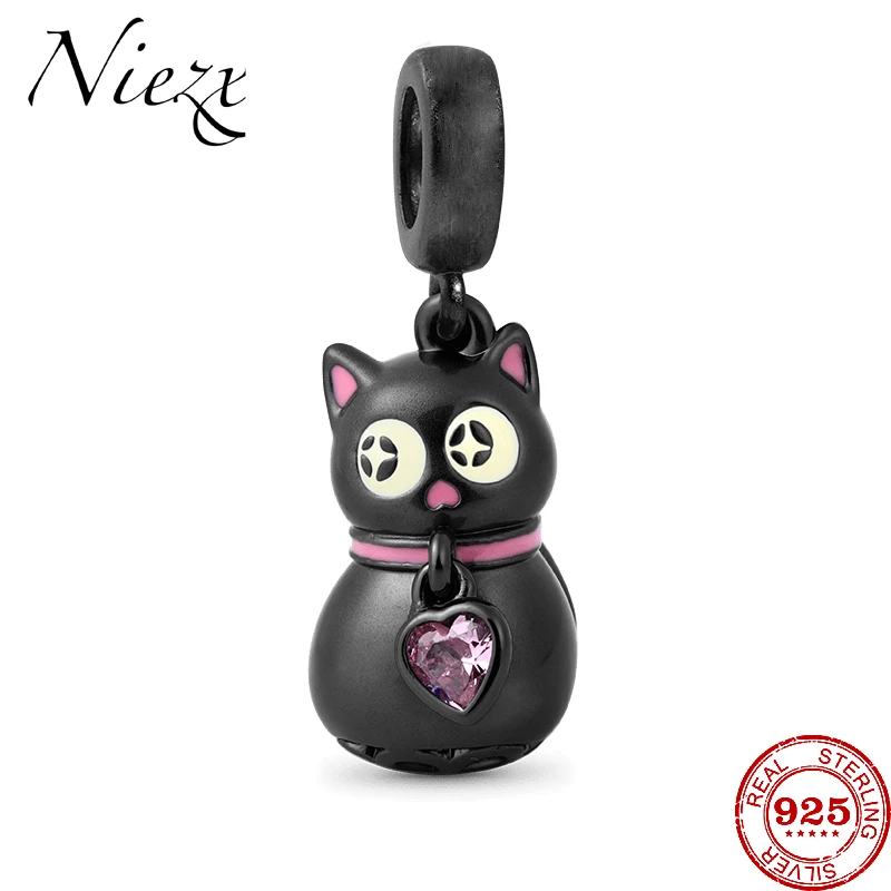 Подвеска-Шарм кошка из серебра 2021 пробы, светящаяся в темноте
