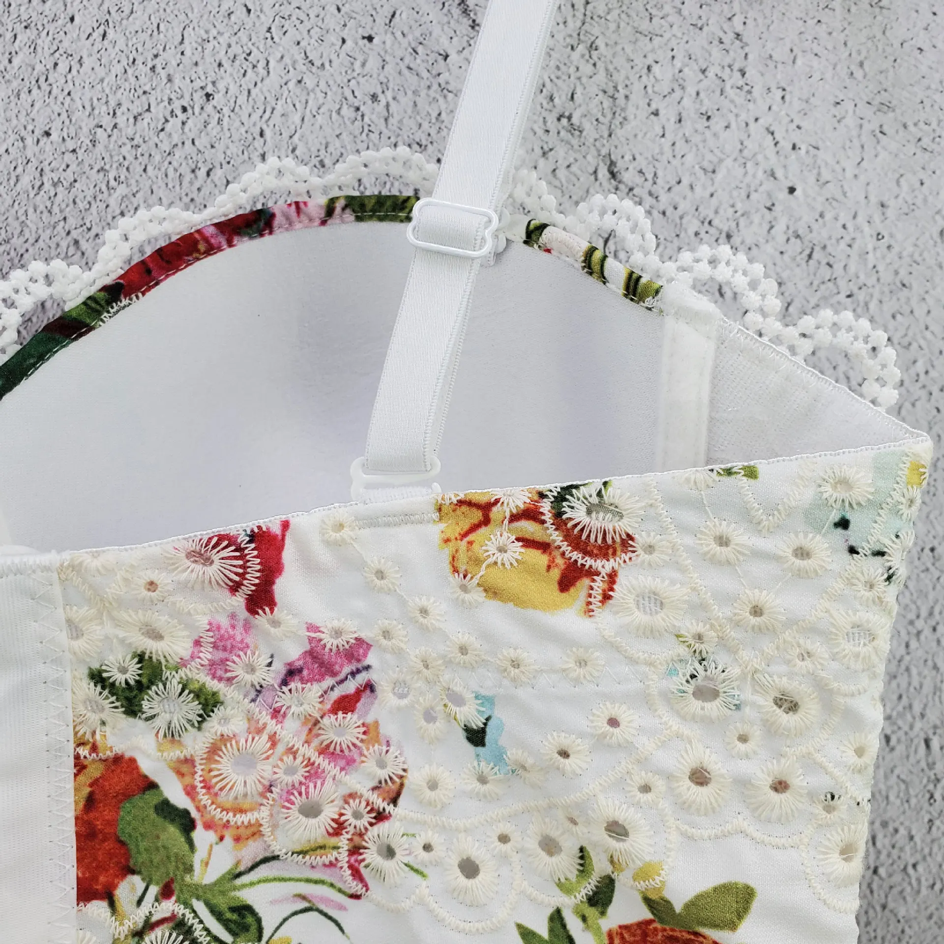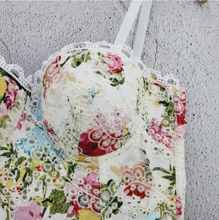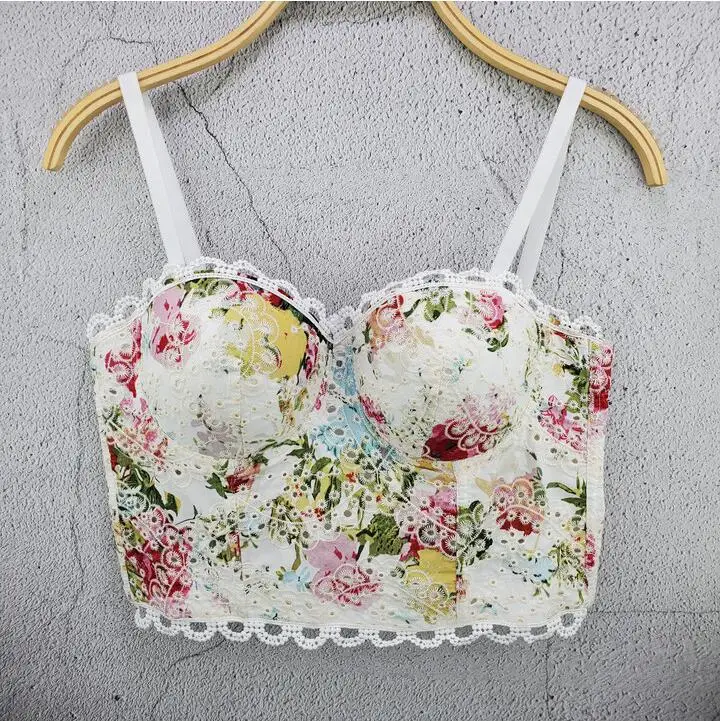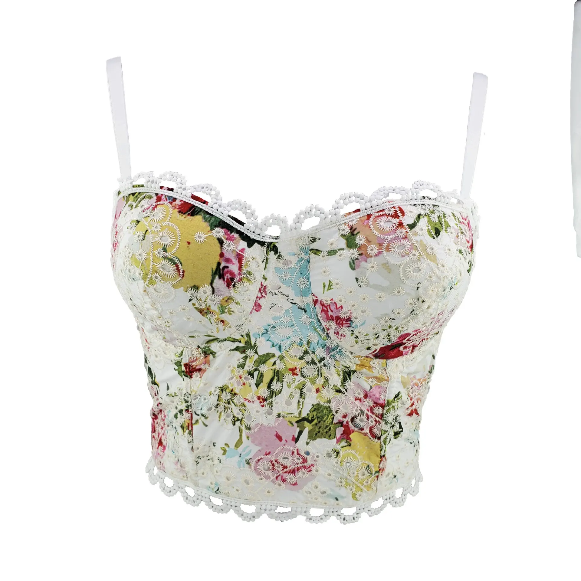 Винтаж цветок Сексуальная майка Для Женщин Кружевной Корсет коротки...