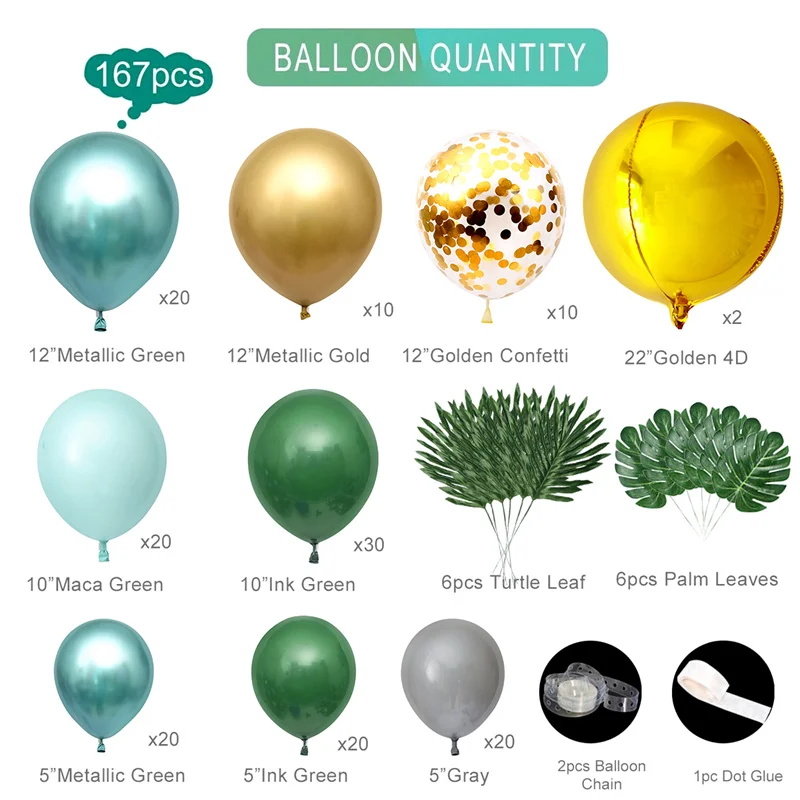 12 дюймов металлик Зеленый * 20 шт, металлическое золото * 10 шт,