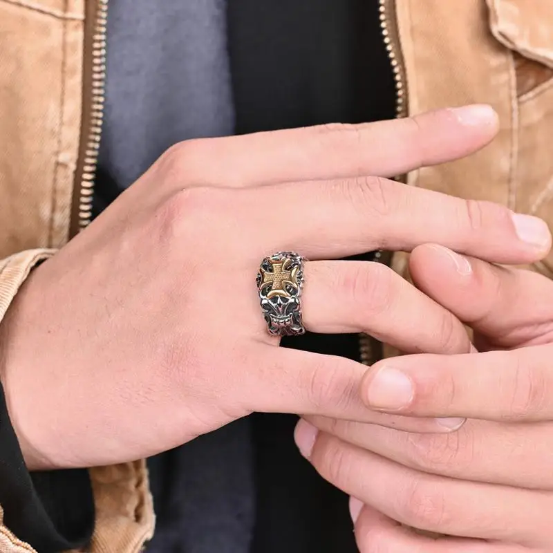 Классические кольца с крестом для мужчин, Модные Позолоченные религиозные украшения с крестом в стиле панк, ювелирные изделия для вечевечерние, выпускного вечера
